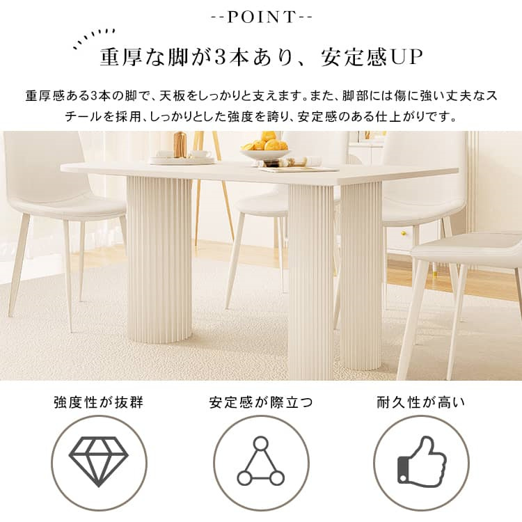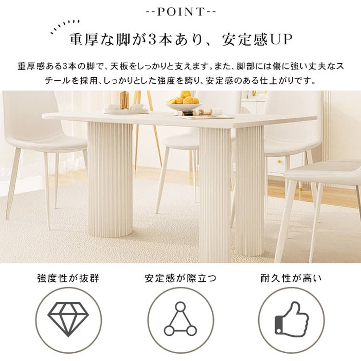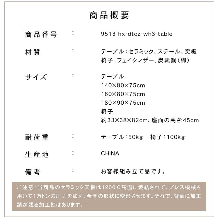 | 材質 | 【テーブル】セラミック、スチール 【いす】人工皮革、ウレタン、スチール |