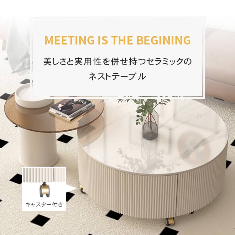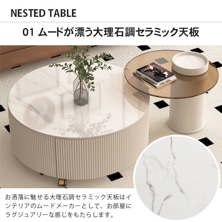 | 商品外寸 | 大テーブル:直径80×高37cm 小テーブル:直径60×高40cm |