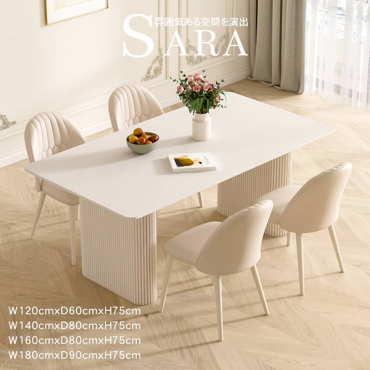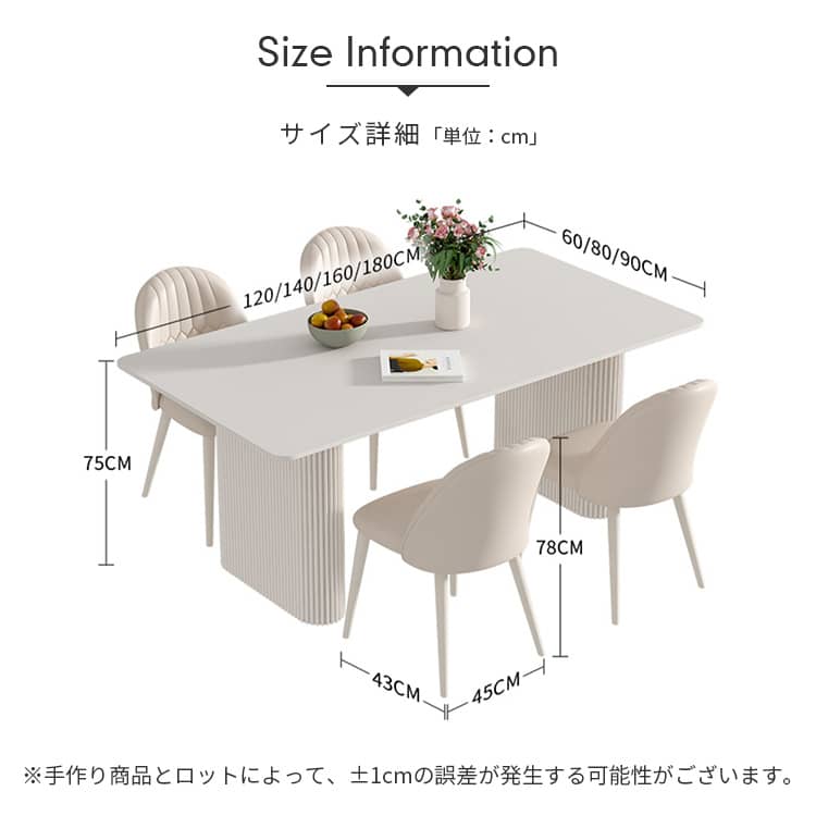 | 商品外寸 | ダイニングテーブル ■幅120cm×奥行き60cm×高さ75cm ■幅140cm×奥行き80cm×高さ75cm ■幅160cm×奥行き80cm×高さ75cm ■幅180cm×奥行き90cm×高さ75cm ■いす:幅45cm×奥行き43cm×高さ78cm |