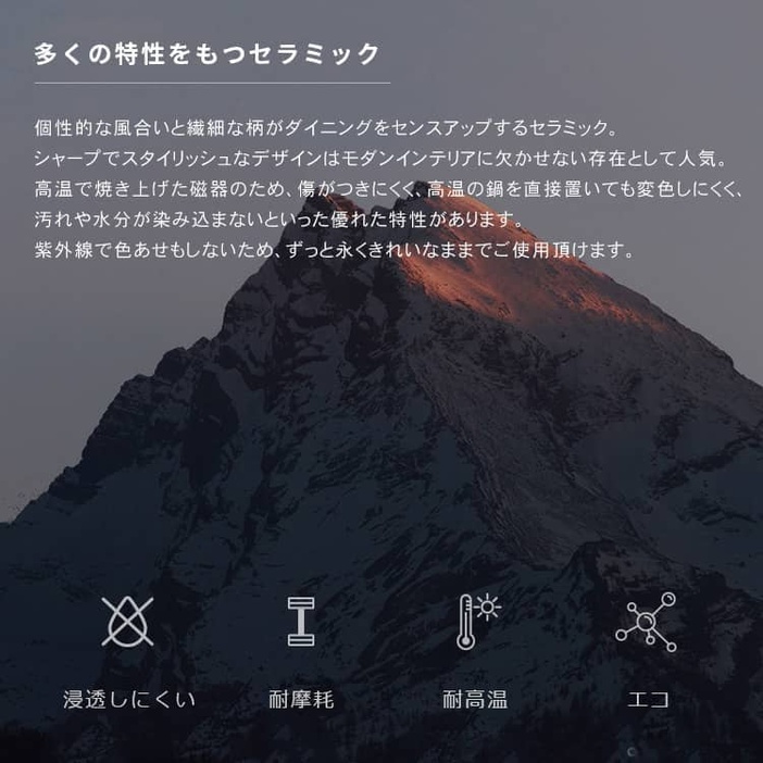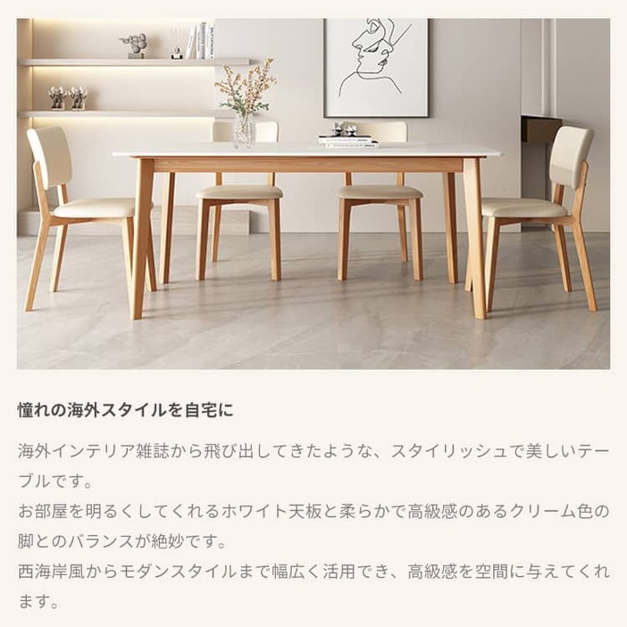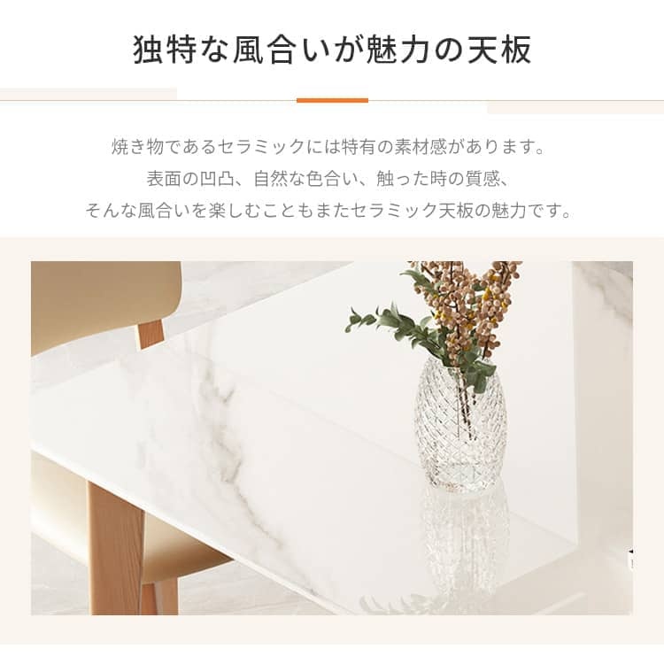 | おすすめのポイント | ■セラミックの美しさを楽しめるリビングテーブル。 ■安定感のある無垢材フレーム。 ■個性的な風合いと繊細な柄がダイニングをセンスアップされます。 ■面取り加工、ご安心して使用させていただきます。 ■お部屋を明るくしてくれるホワイト天板と柔らかで高級感のあるクレーム色の脚との絶妙なバランス。 |