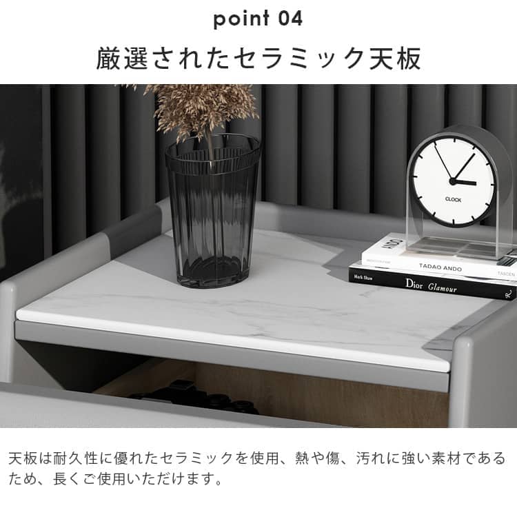 | 素材 | ■天板:セラミック ■本体:合成皮革、天然木材 ■脚部:スチール |