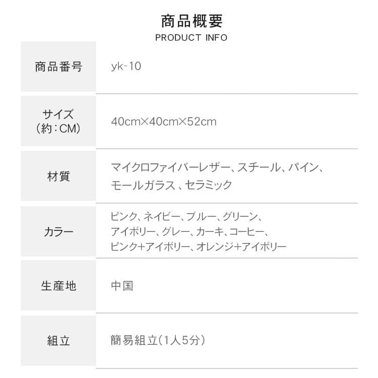 | 素材 | ■マイクロファイバーレザー ■スチール ■モールガラス ■パイン ■セラミック |
