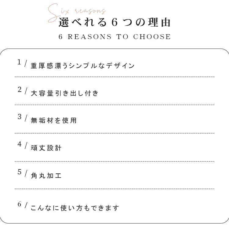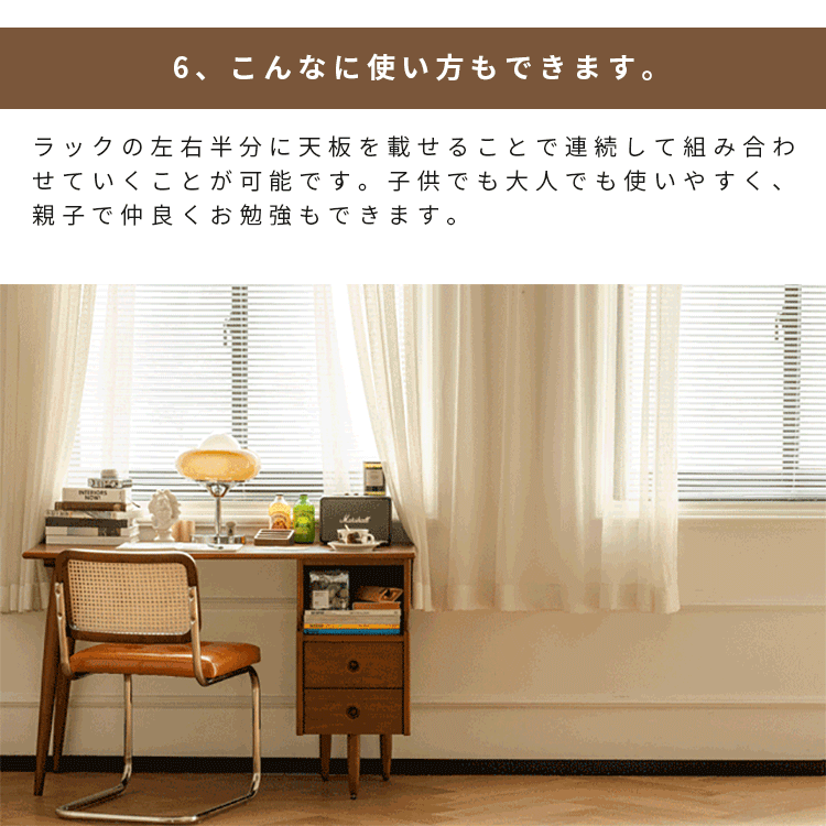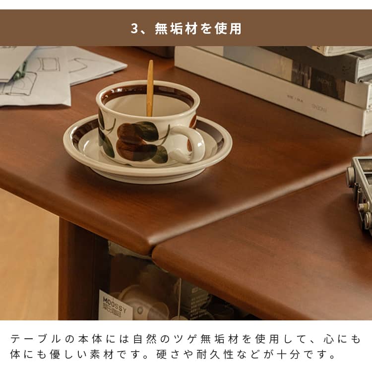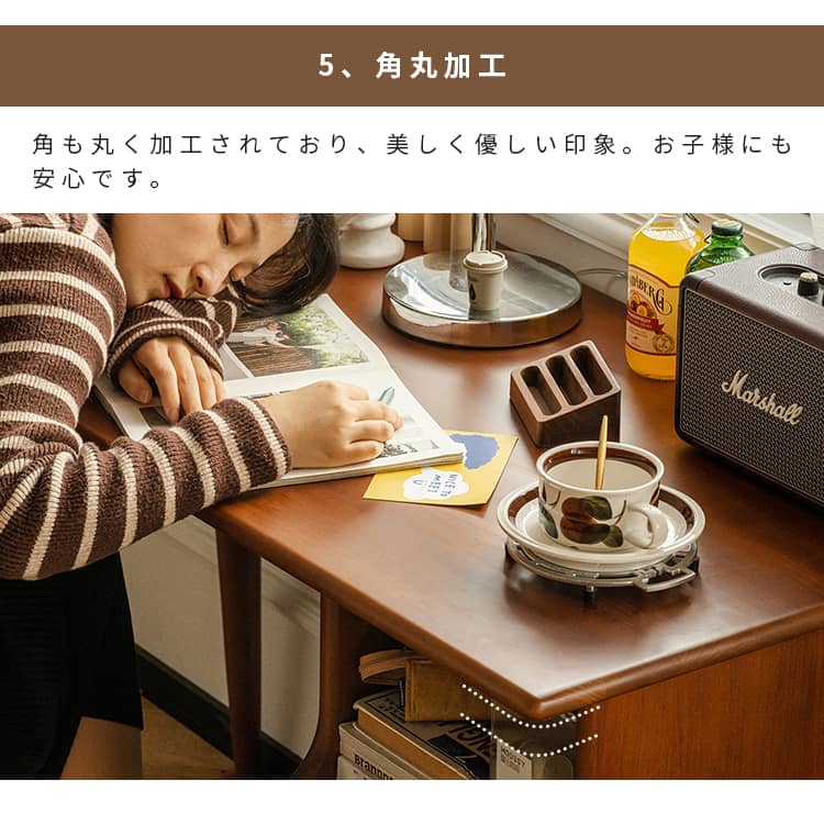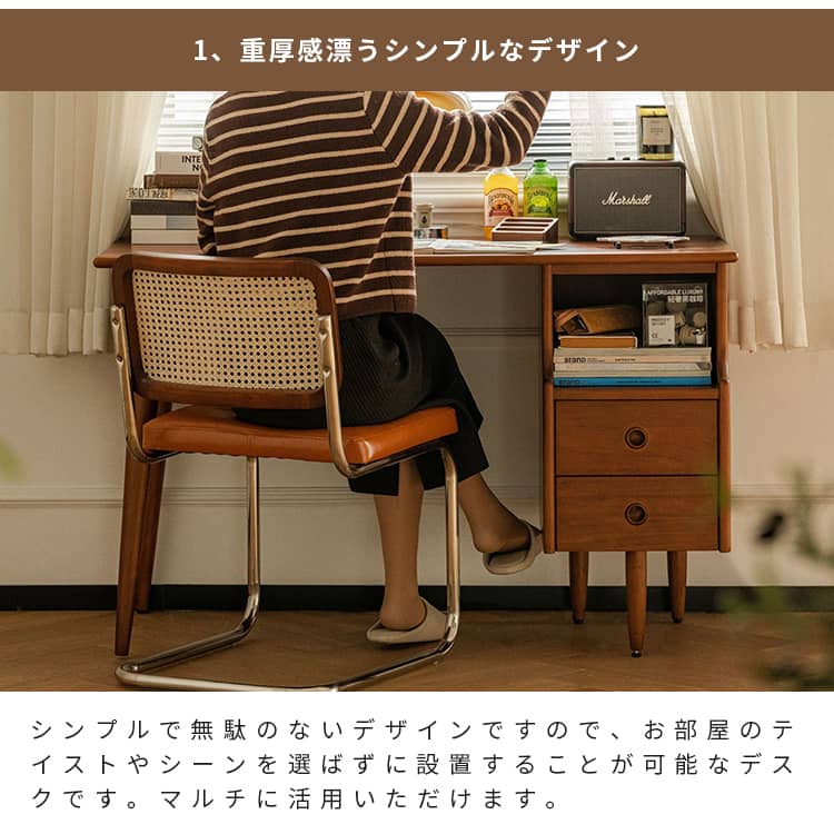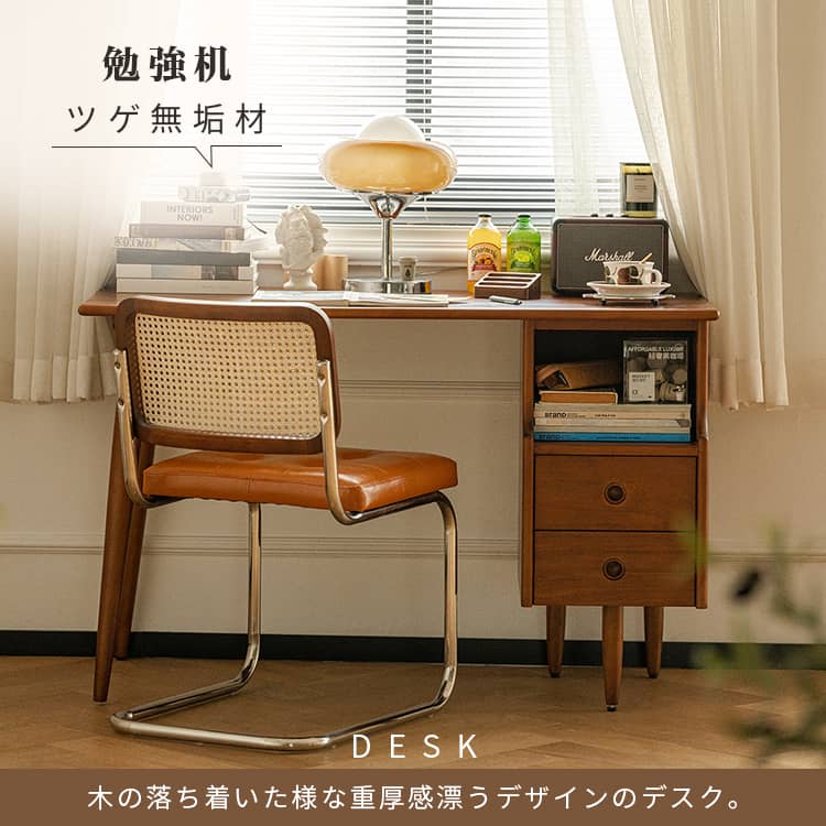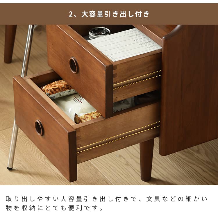 | おすすめのポイント | ■落ち着いた印象のデスク。 ■テーブルの角には面取り加工でお子様いるご家庭も安心に使える。 ■取り出しやすい大容量引出付きで、収納にとても便利です。 |