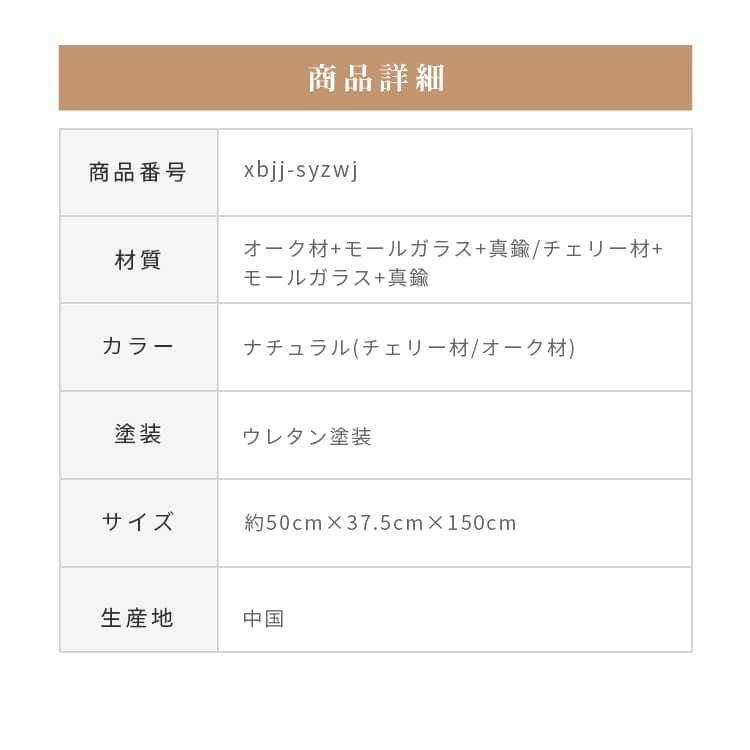 | 材質 | オーク材+モールガラス+真鍮 チェリー材+モールガラス+真鍮 |