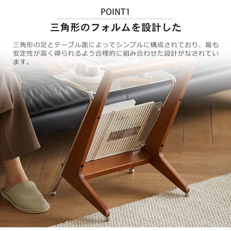 | おすすめのポイント | ■三角形のフォルムを設計した。 ■テーブルの角には面取り加工でお子様いるご家庭も安心に使える。 ■組み立ての手間がかからない、届いてからすぐ使えます。 ■コンパクトサイズなので、持ち運びやすい。 |