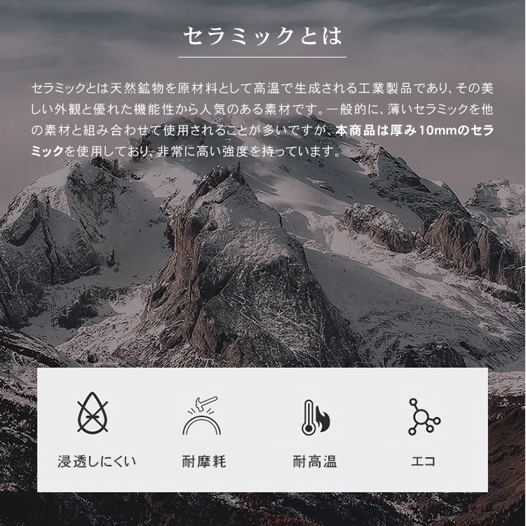 | おすすめのポイント | ■高級感のあるセラミック天板。 ■傷や摩擦に強く、金属などで擦っても傷が付きにくくなっています。 ■高温のフライパンを直接置いても変形や変色の心配はありません。 |