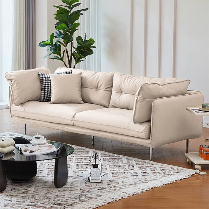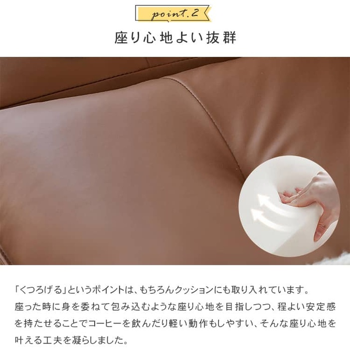 | 材質 | ■フレーム:天然木 ■張り地:合成皮革 ■クッション:ウレタン、シリコンフィル ■脚:スチール |