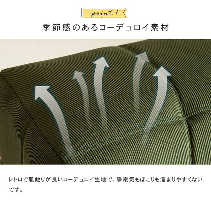 | 材質 | 張地:コーデュロイ クッション:ウレタン、Sバネ+弾力包帯 フレーム:天然木 |