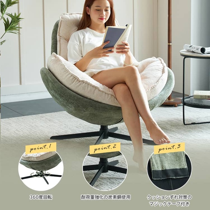 | おすすめのポイント | ■360度回転できる。 ■人間工学設計。 ■全身を包み込むような座り心地。 ■安心できる耐荷重。 ■洗練されたデザイン。 |