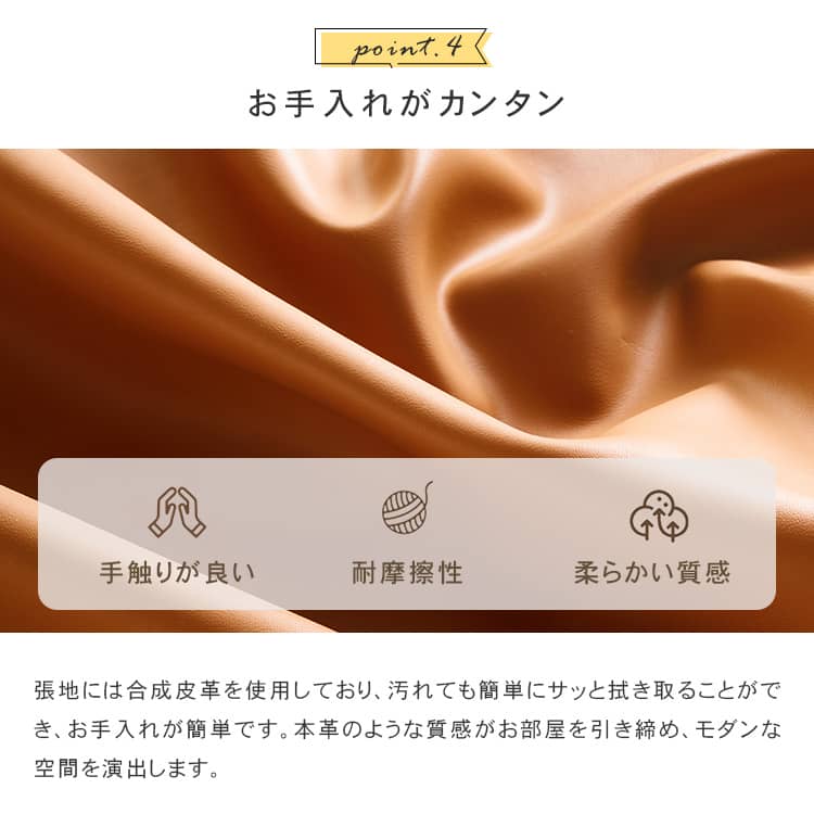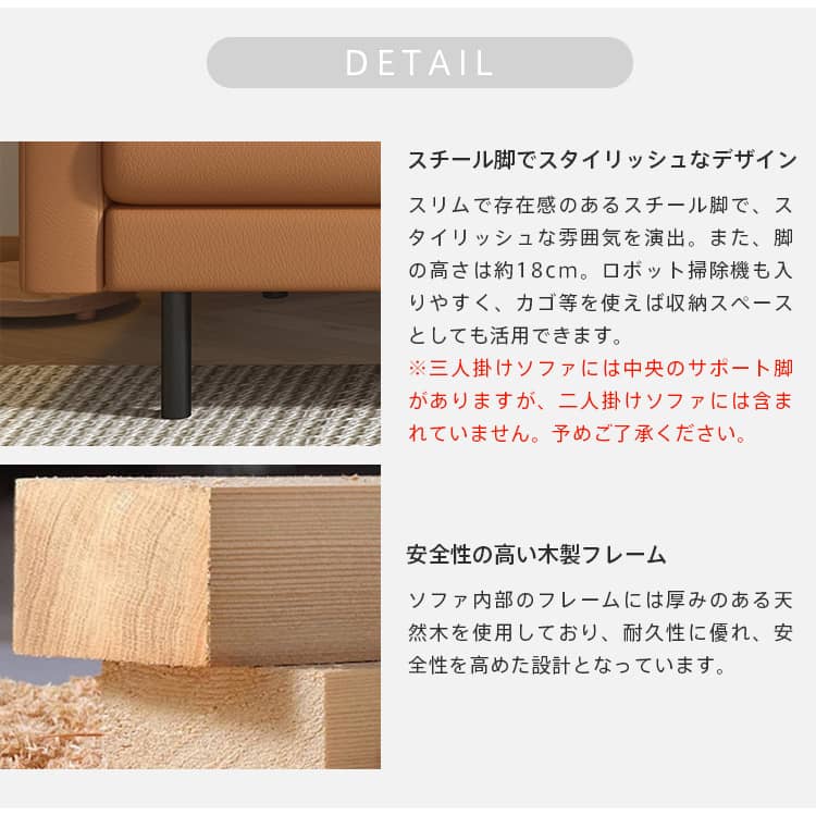 | 材質 | 張地:合成皮革 脚:スチール クッション:ウレタン、シリコンフィル フレーム:天然木 |