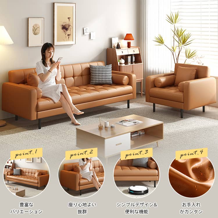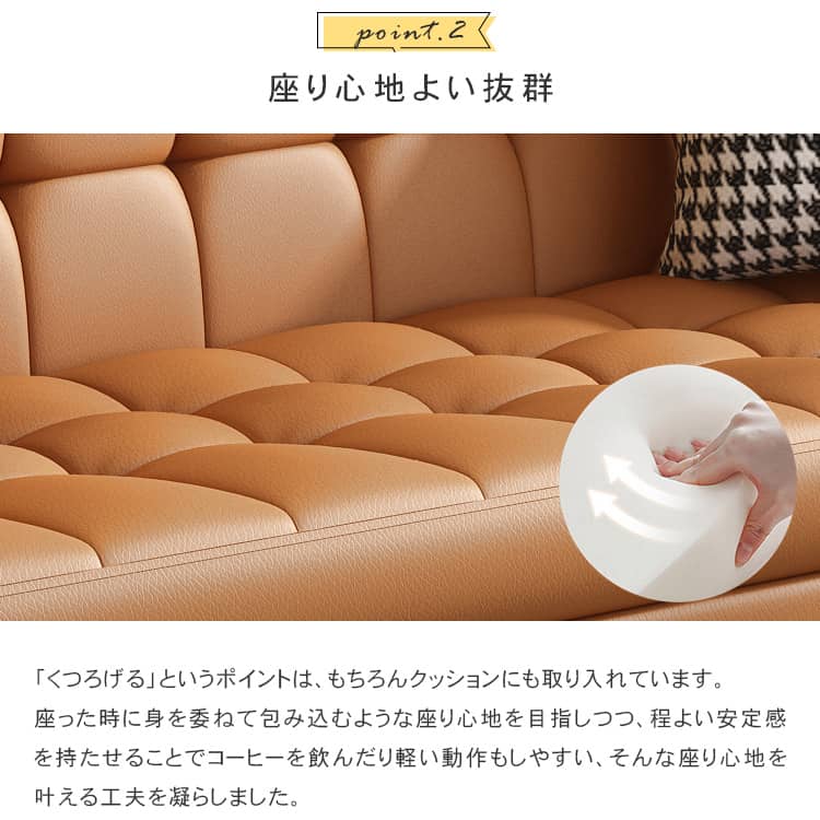 ■ソファで生まれ変わる、くつろぎの空間。 ■体にフィットする背もたれ。 ■座り疲れにくい座面クッション。 ■ゆったりくつろげるワイト設計。 ■圧迫感を感じさせないデザイン。 ■お掃除しやすいソファ下空間。 |