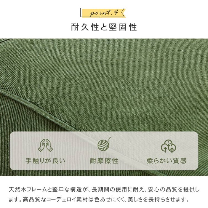 | 材質 | 張地:コーデュロイ 脚:スチール クッション:ウレタン、シリコンフィル フレーム:天然木 |