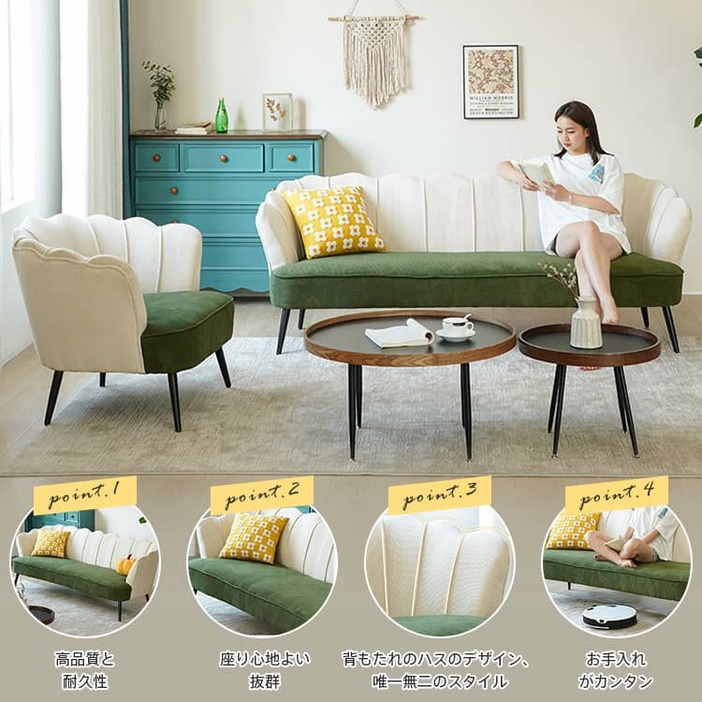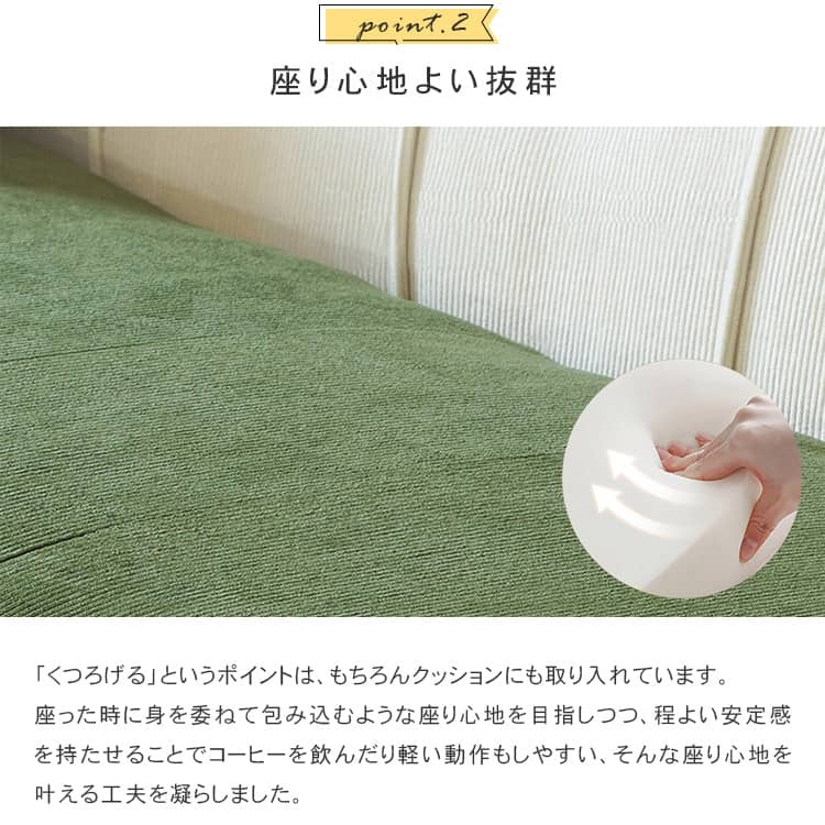 | おすすめのポイント | ■ソファで生まれ変わる、くつろぎの空間。 ■体にフィットする背もたれ。 ■座り疲れにくい座面クッション。 ■ゆったりくつろげるワイト設計。 ■圧迫感を感じさせないデザイン。 ■お掃除しやすいソファ下空間。 |