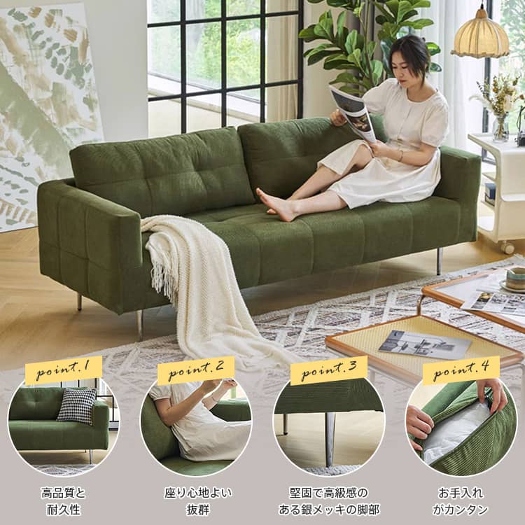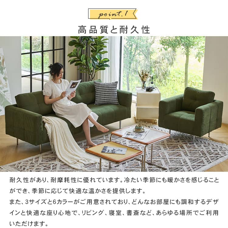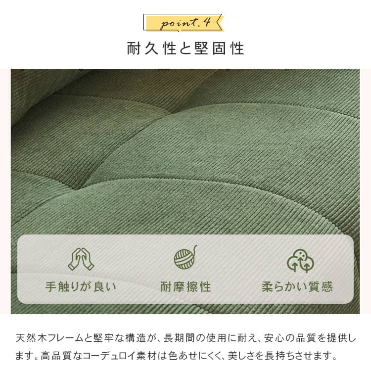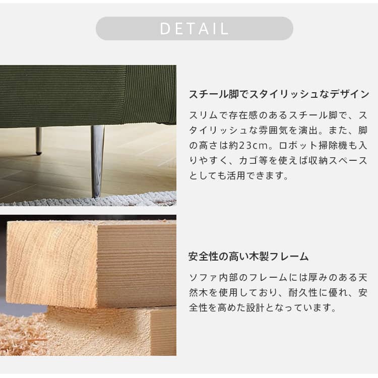 | 材質 | 張地:コーデュロイ 脚:スチール クッション:ウレタン、シリコンフィル フレーム:天然木 |