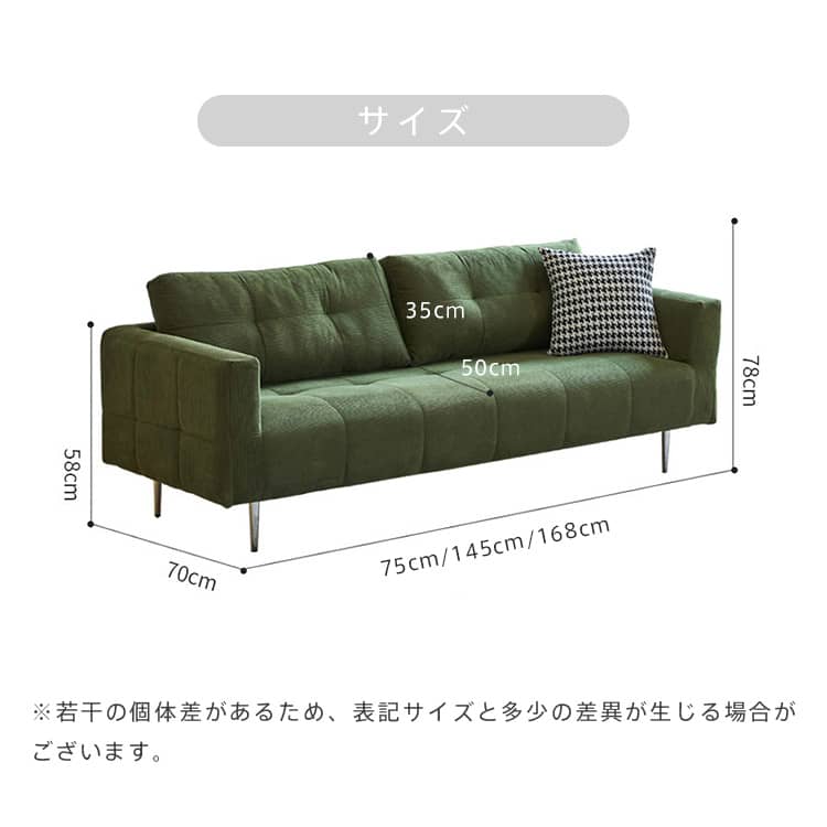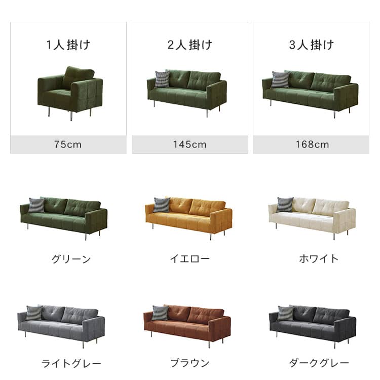 | 商品サイズ | 1人掛け:75×70×78cm 2人掛け:145×70×78cm 3人掛け:168×70×78cm |