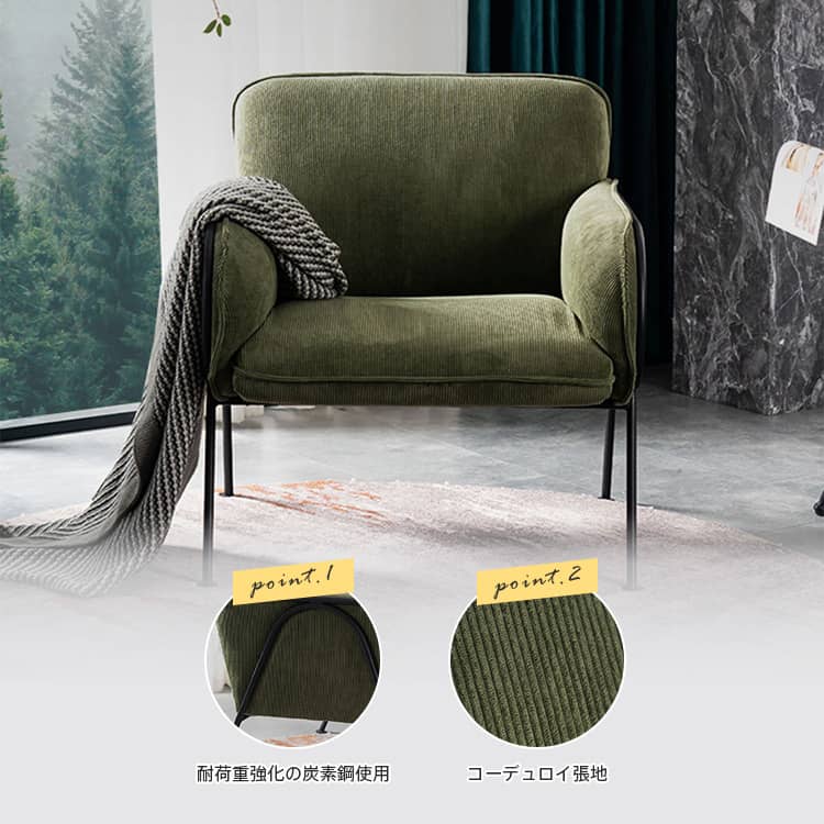 | 材質 | 張地:コーデュロイ 脚:スチール クッション:シリコンフィル フレーム:天然木 |