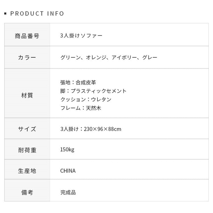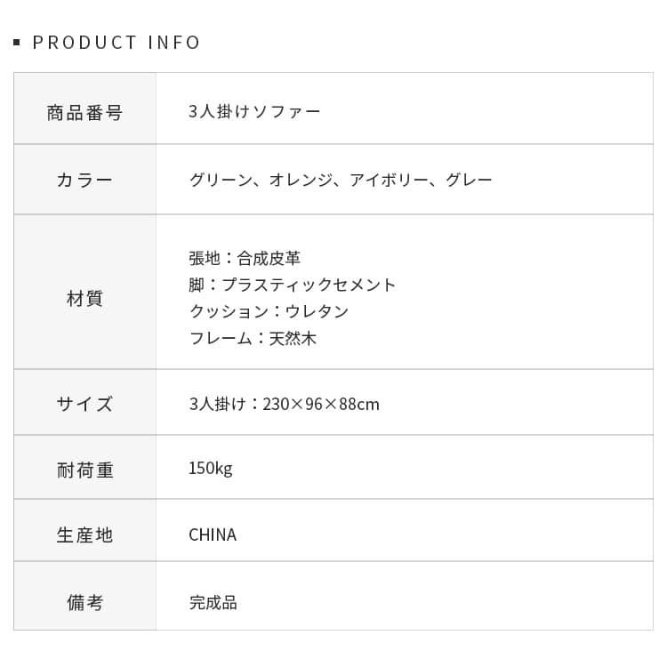 | 商品サイズ | 3人掛け:約230×96×88cm |