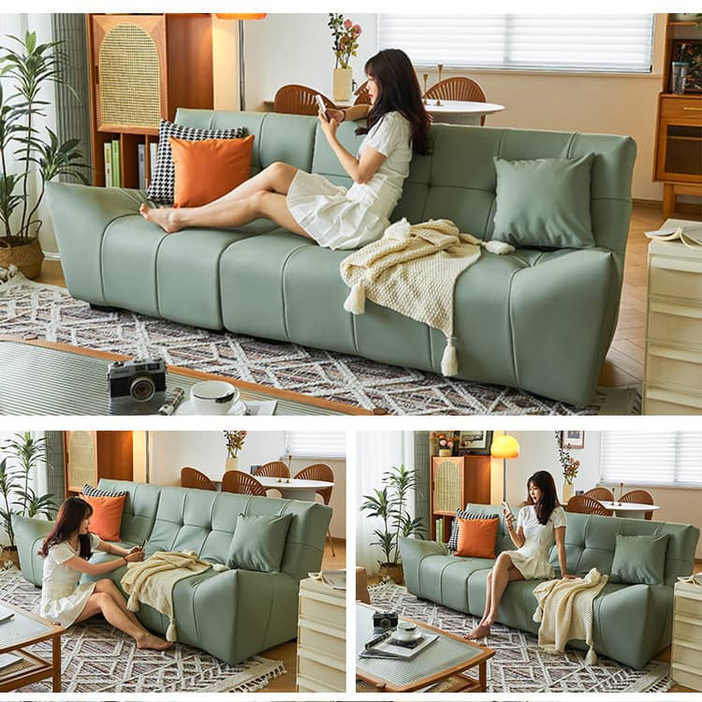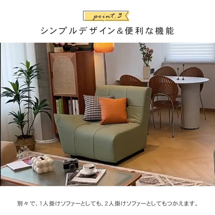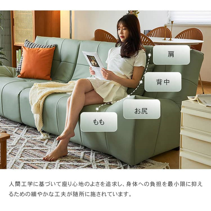 ■座面の奥行きは約58cm。深くも浅くも腰掛けられ、気分に合わせて自由にリラックスできます。 ■ソファの内部フレームには厚みのある天然木が使用されており、そのため耐久性に優れた安全性の高い構造となっています。さらに、座面には十分な量の贅沢なクッションが詰められており、心地よい弾力と底付き感のない座り心地を実現しています。 ■背もたれにはクッション性の高い素材を使用し、体にフィットして全身でリラックスできます。 ■圧迫感のないシンプルなデザインは、家族や友人と過ごすリビングを洗練された寛ぎの空間に演出します。 ■人間工学に基づいた設計で、体への負担を軽減してくれます。長時間座っても疲れません。 ■張地には合成皮革を採用しており、合成皮革は通常、汚れや摩耗に強く、水や汚れに対する耐性があります。これにより、日常の使用や家庭でのペットや子供のいる家庭に適しています。 ■背面まで美しいソファなので、お部屋のどこに置いても雰囲気を壊しません。 ■別々で、1人掛けソファーとしても、2人掛けソファーとしてもつかえます。 |