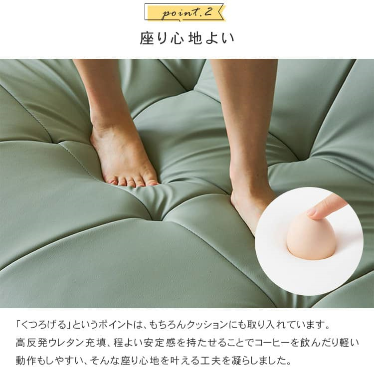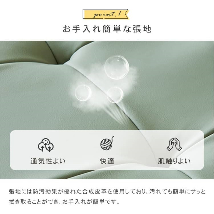 | 材質 | 張地:合成皮革 脚:プラスティックセメント クッション:ウレタン フレーム:天然木 |