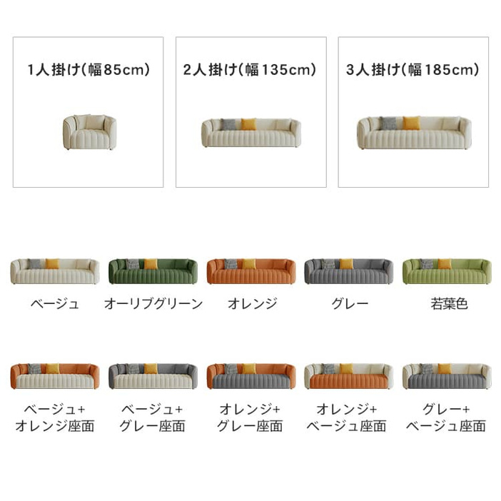 | 商品サイズ | 【1人掛け】約85cm×72cm×74cm 【2人掛け】約135cm×72cm×74cm 【3人掛け】約185cm×72cm×74cm |