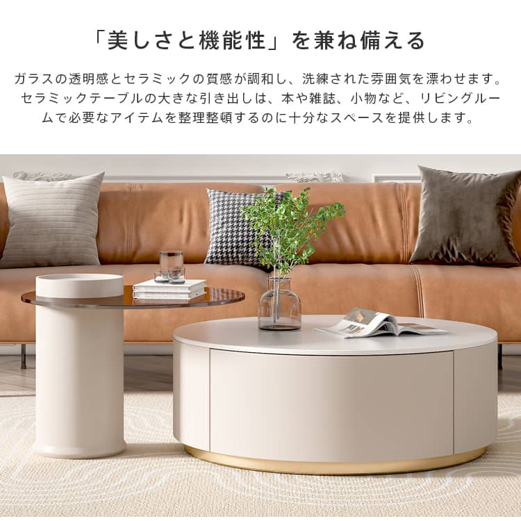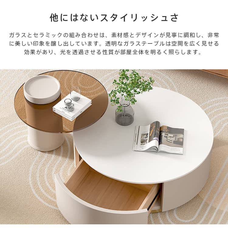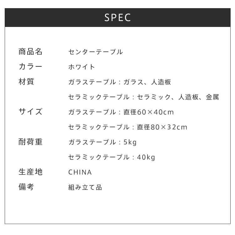 | 商品外寸 | セラミックテーブル:直径80×高32cm ガラステーブル:直径60×高40cm |