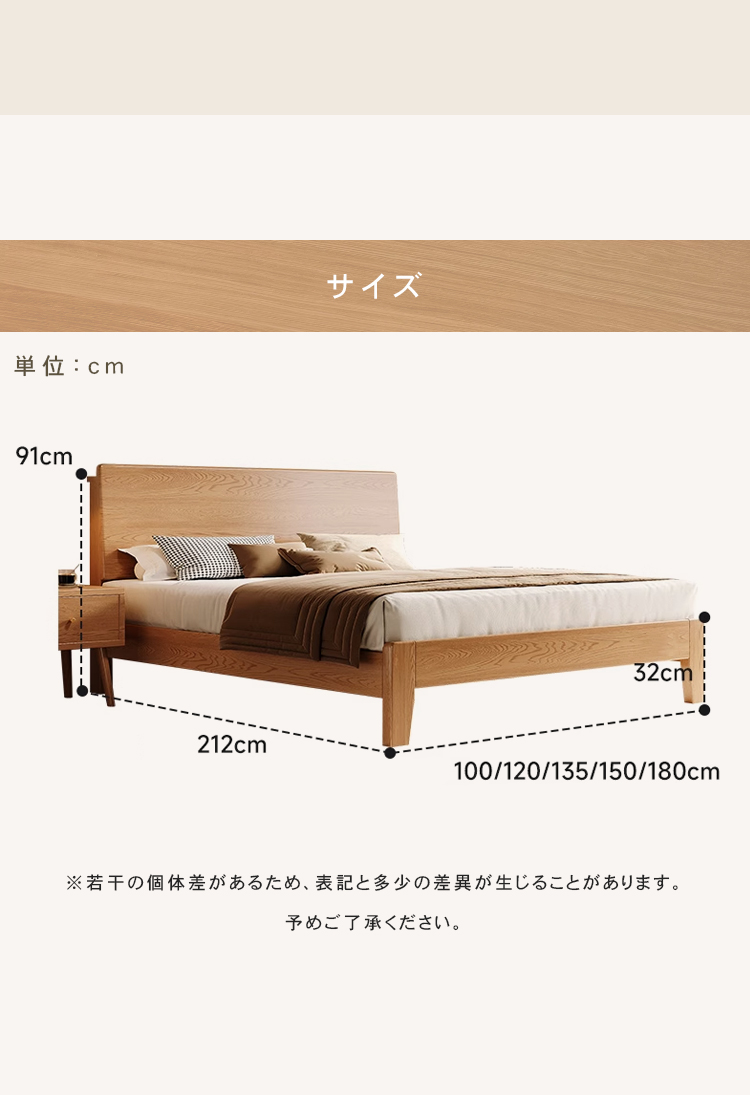 | 商品サイズ | ベッド ■横幅120/150/180×奥行き212×高さ81/91cm |