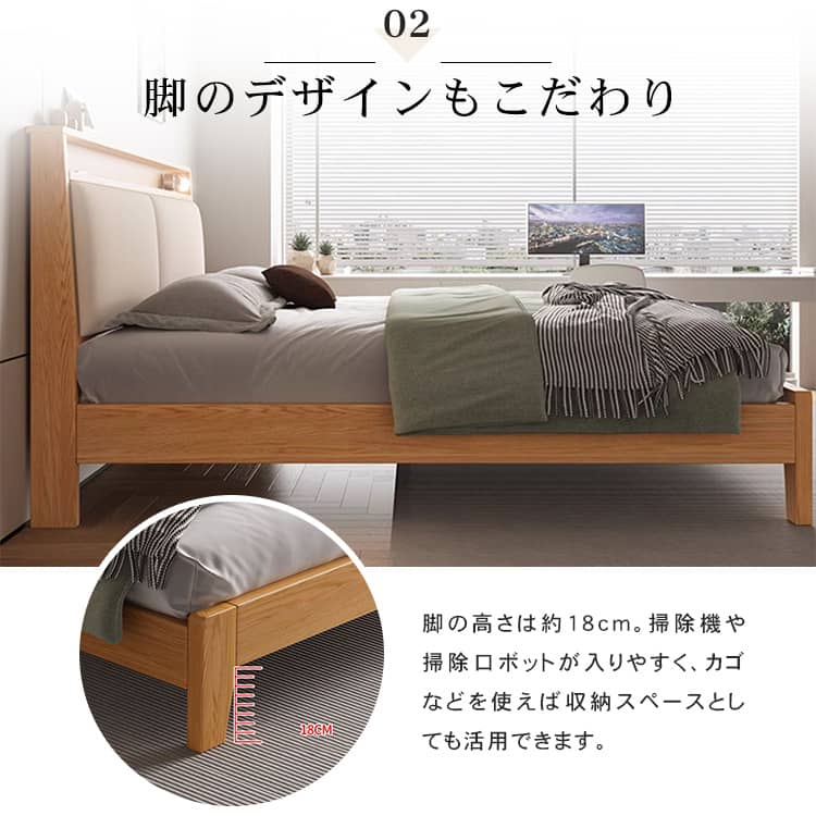 | おすすめのポイント | ■モダンで洗練された空間を演出してくれます。 ■上品で優美さ際立つヘッドボード。 ■人間工学設計で、体にフィットする形状と角度。 ■掃除機や掃除ロボットが入りやすい脚の高さ。 ■通気性に優れたベッドは、マットレスの湿気対策に優れています。 |