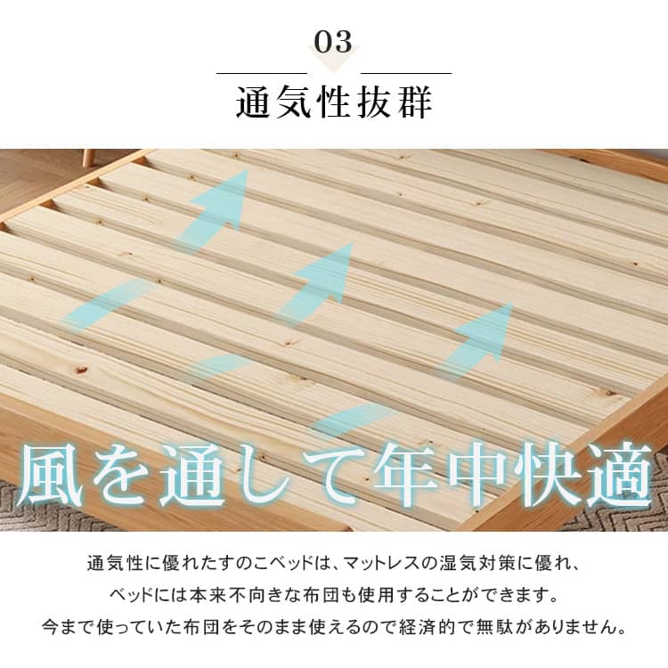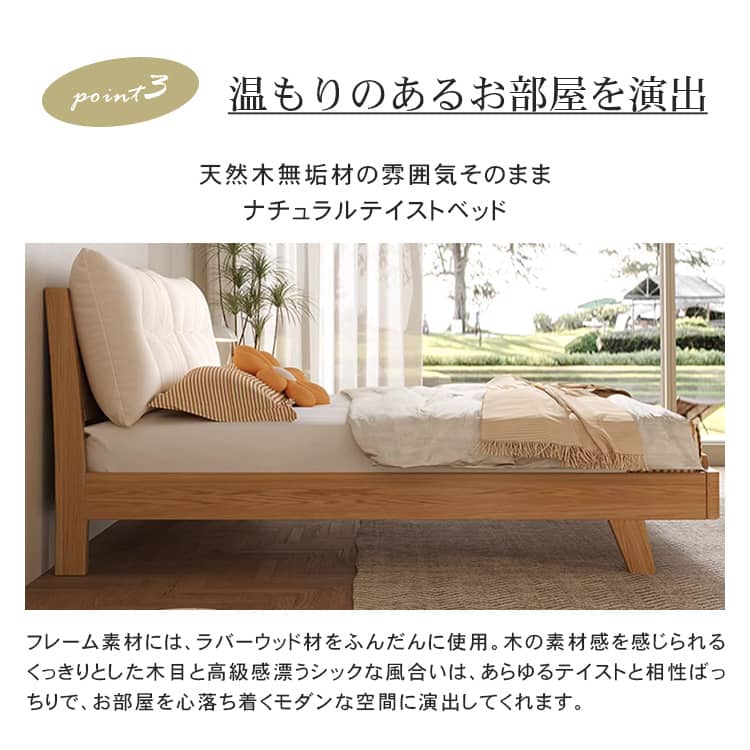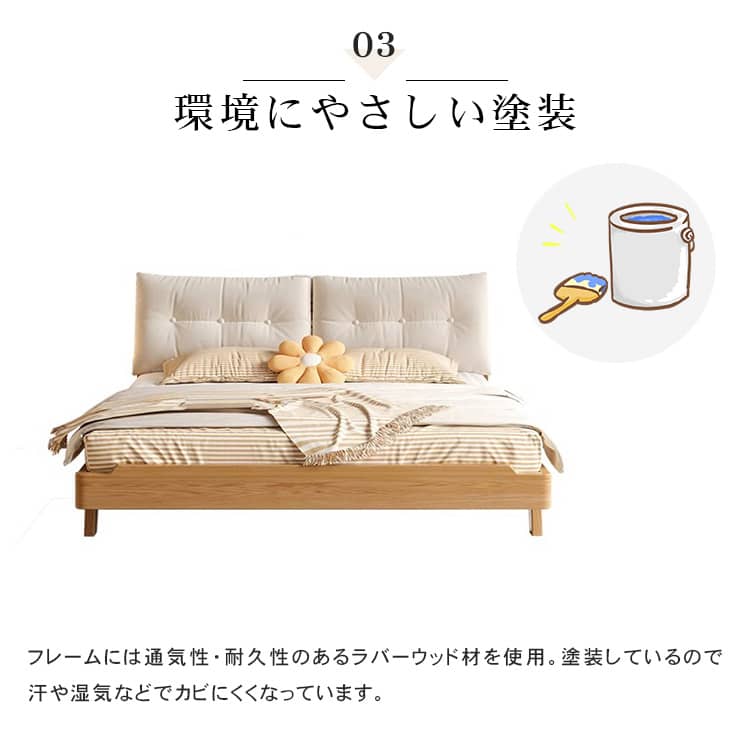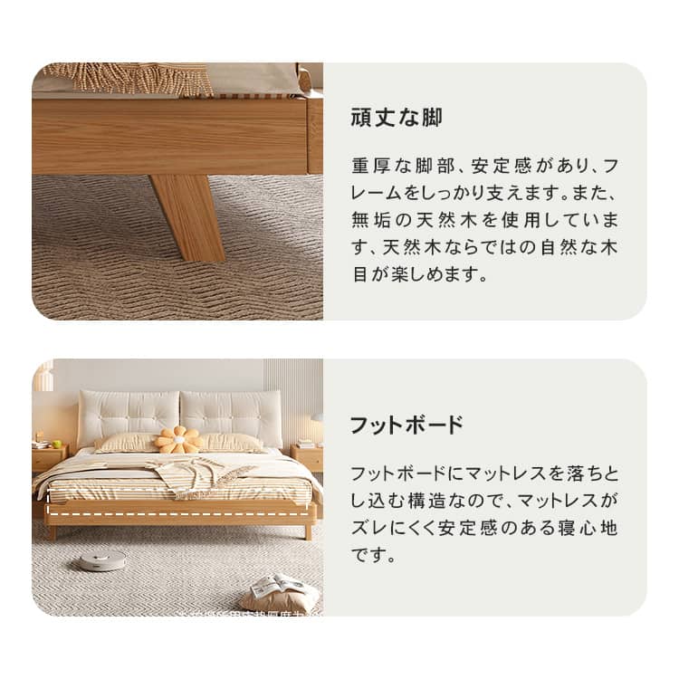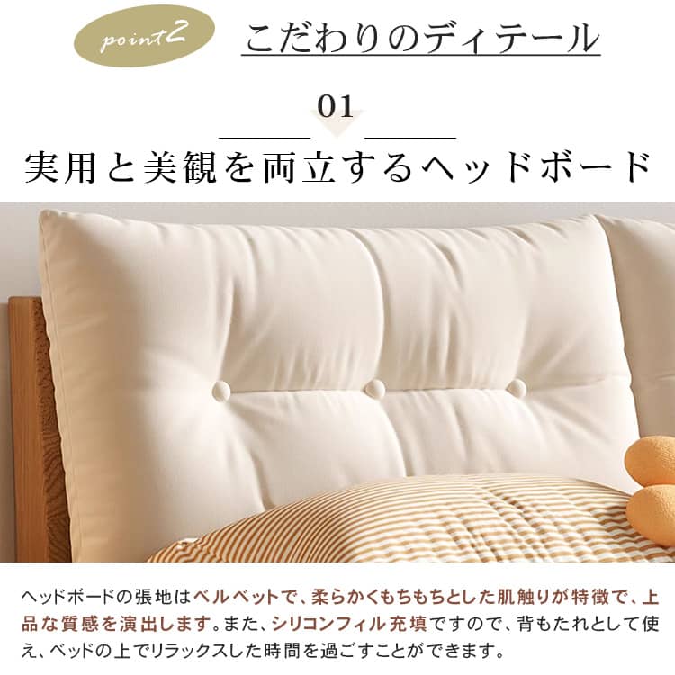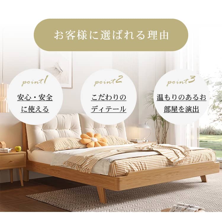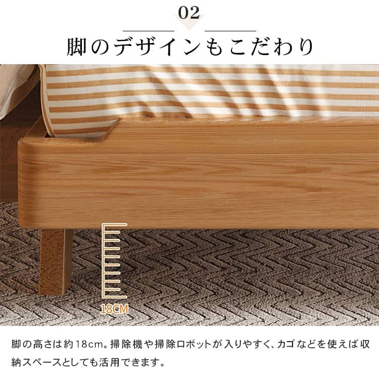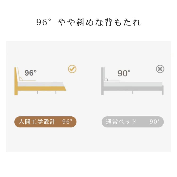 | おすすめのポイント | ■モダンで洗練された空間を演出してくれます。 ■上品で優美さ際立つヘッドボード。 ■人間工学設計で、体にフィットする形状と角度。 ■掃除機や掃除ロボットが入りやすい脚の高さ。 ■通気性に優れたベッドは、マットレスの湿気対策に優れています。 |