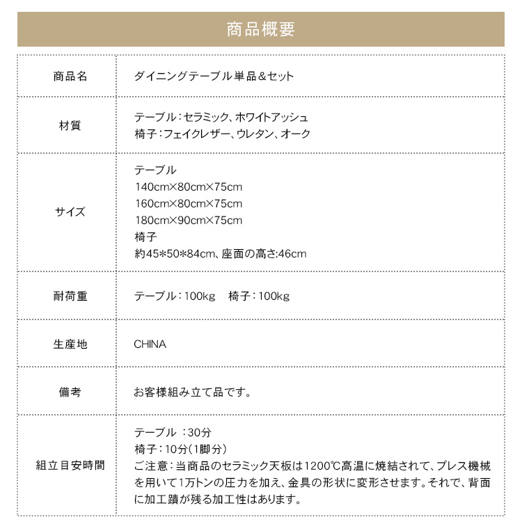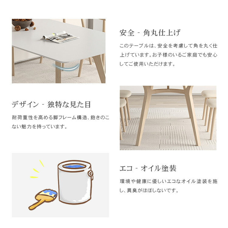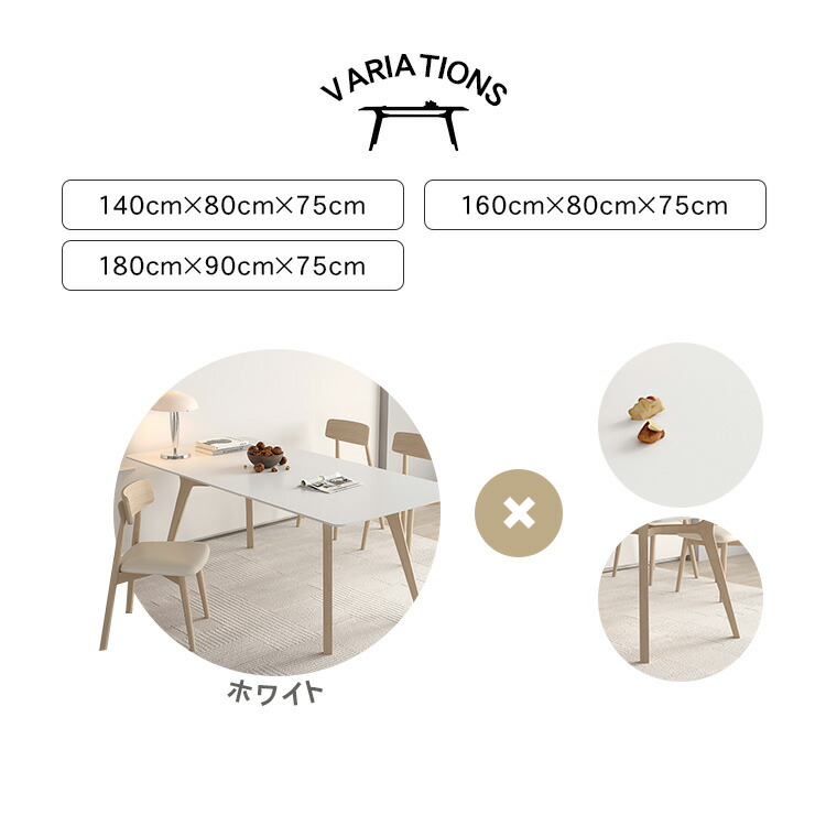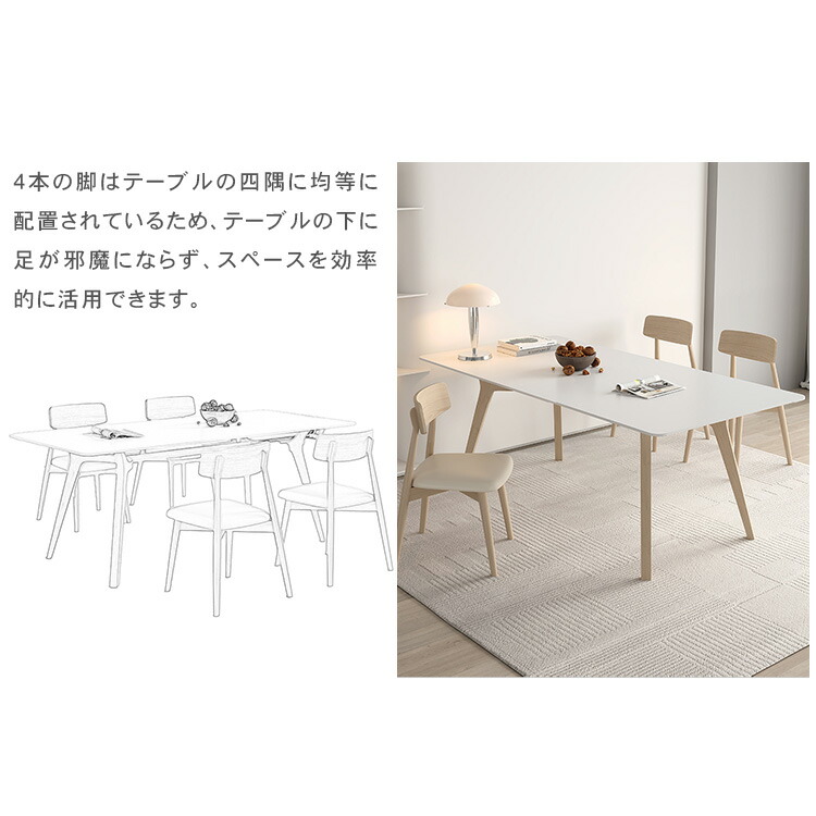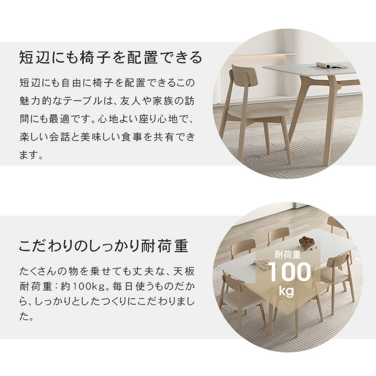 | おすすめのポイント | ■3サイズがご用意されており、お部屋の広さやテーブルの配置に合わせて最適な組み合わせをお選びいただけます。 ■短辺にも椅子を自由に配置できる魅力的なテーブル。友人や家族の訪問でも心配はありません 。 ■下部にゆとりがあり、足元に広々とした空間があるため、快適なダイニング空間を実現し、リラックスした時間を過ごせます。 ■テーブルの角を丸くした安全に配慮した設計で、お子様のいるご家庭でも安心してご使用いただけます。 ■セラミック天板は高級感があり、耐久性も備えています。美しさと実用性を兼ね備えています。 ■長方形のテーブルは、多くの場所に適応する柔軟性があります。狭いスペースにも置くことができ、壁に沿って配置することも可能です。 |