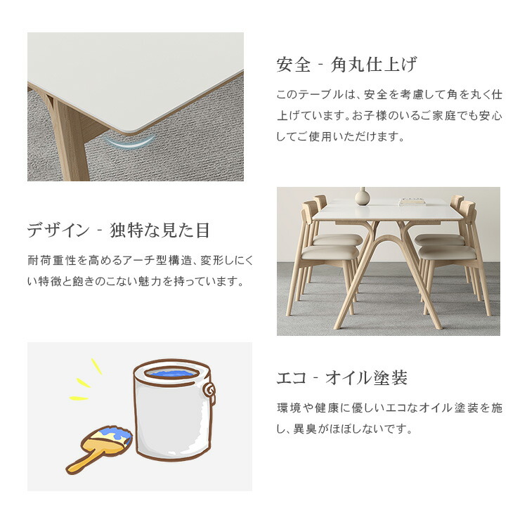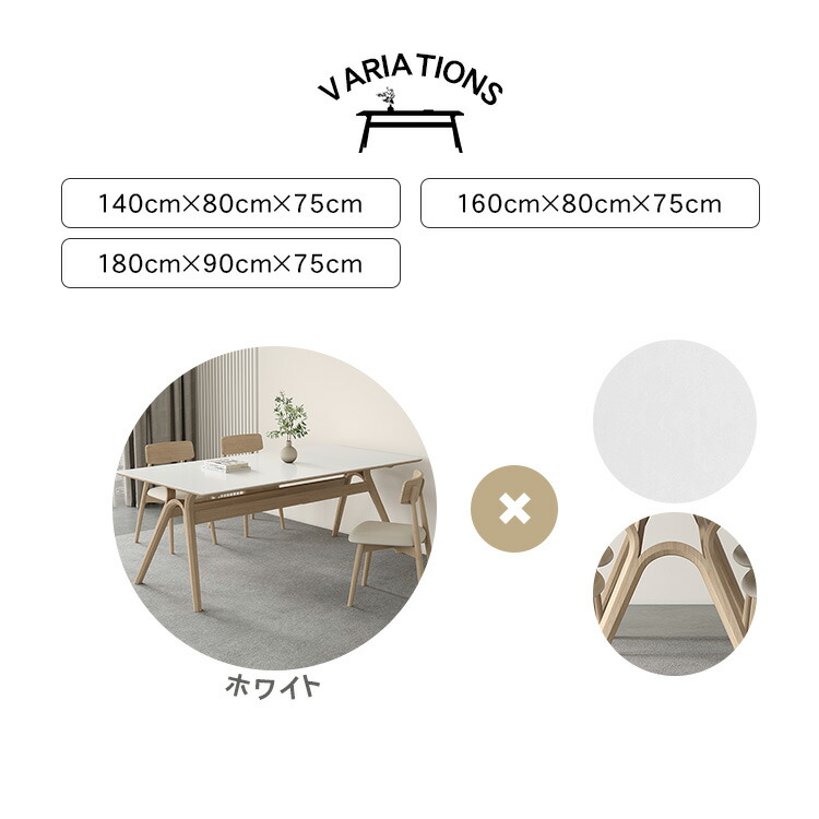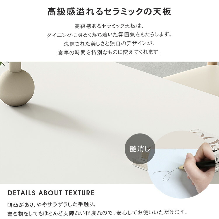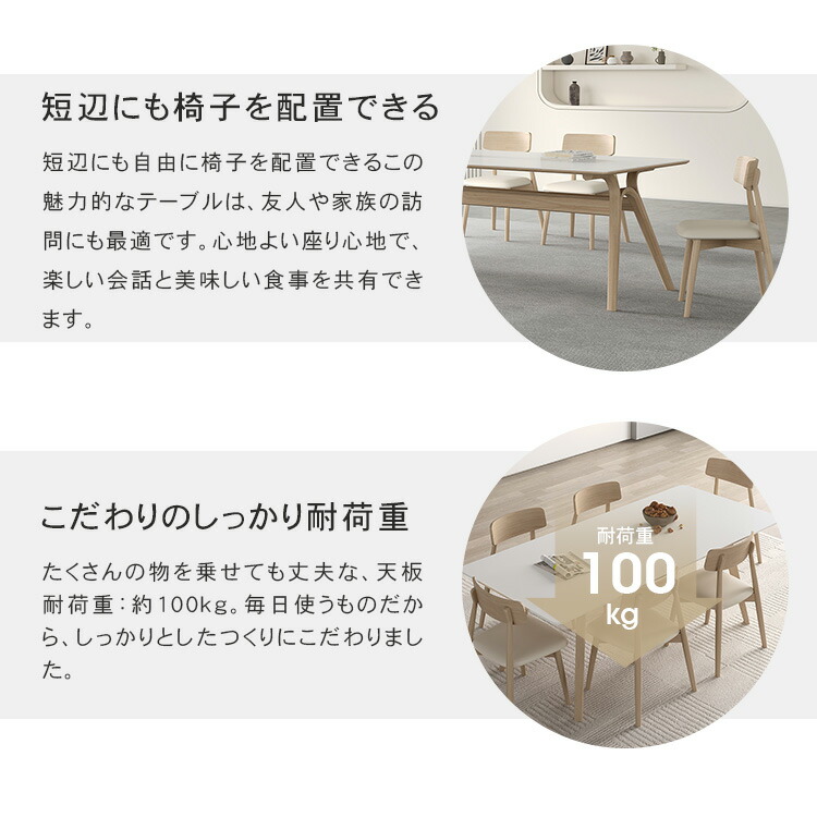 | おすすめのポイント | ■3サイズがご用意されており、お部屋の広さやテーブルの配置に合わせて最適な組み合わせをお選びいただけます。 ■短辺にも椅子を自由に配置できる魅力的なテーブル。友人や家族の訪問でも心配はありません 。 ■下部にゆとりがあり、足元に広々とした空間があるため、快適なダイニング空間を実現し、リラックスした時間を過ごせます。 ■テーブルの角を丸くした安全に配慮した設計で、お子様のいるご家庭でも安心してご使用いただけます。 ■セラミック天板は高級感があり、耐久性も備えています。美しさと実用性を兼ね備えています。 ■長方形のテーブルは、多くの場所に適応する柔軟性があります。狭いスペースにも置くことができ、壁に沿って配置することも可能です。 |