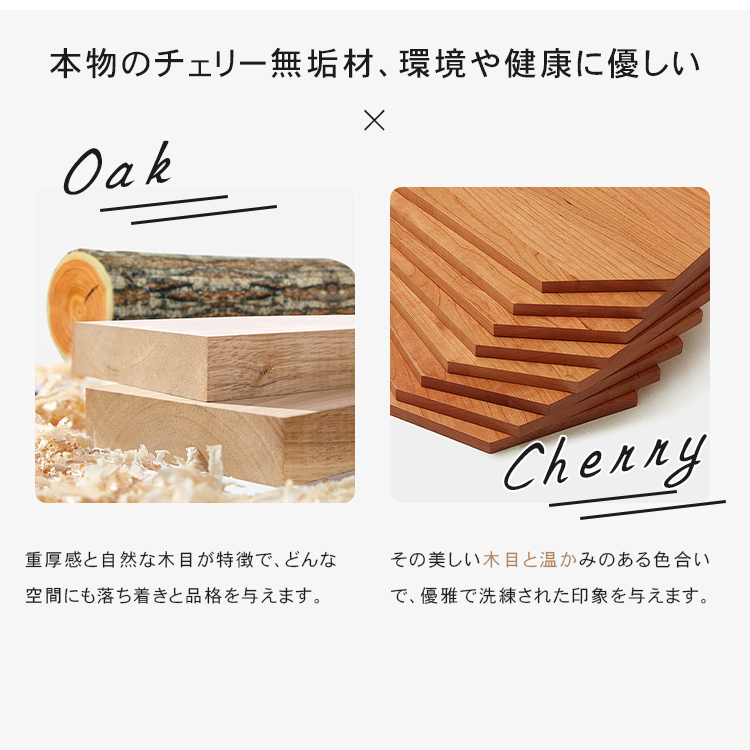 | 材質 | チェリー材/オーク材、発泡ポリエチレン、ウレタン | ||
