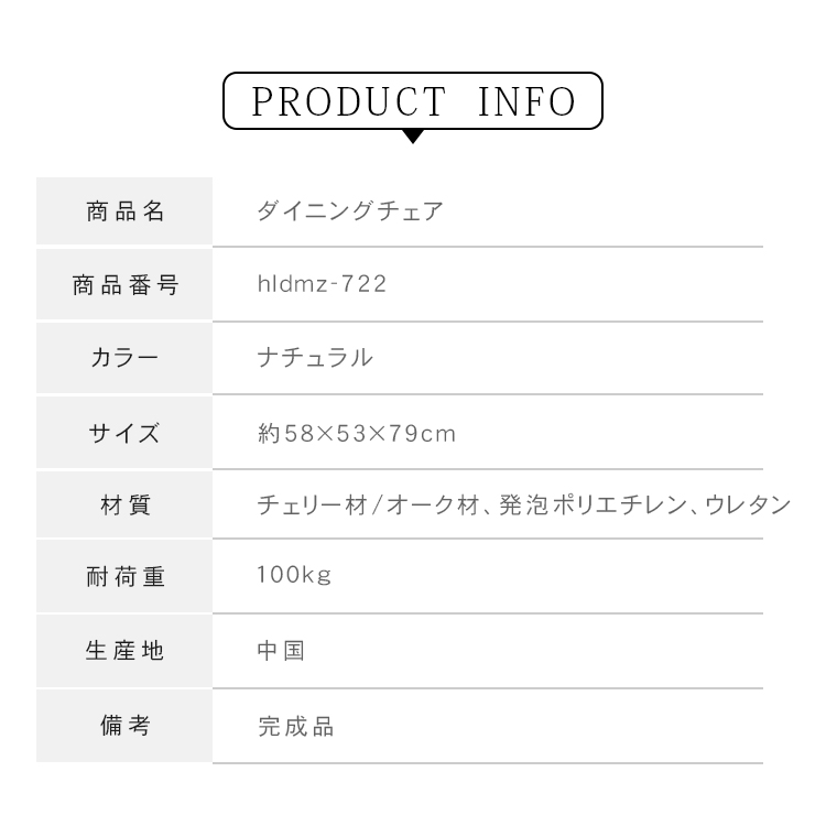 | 商品 | ダイニングチェア | 番号 | hldmz-722 |