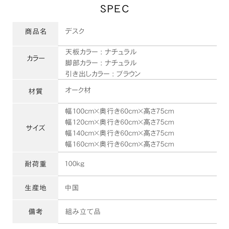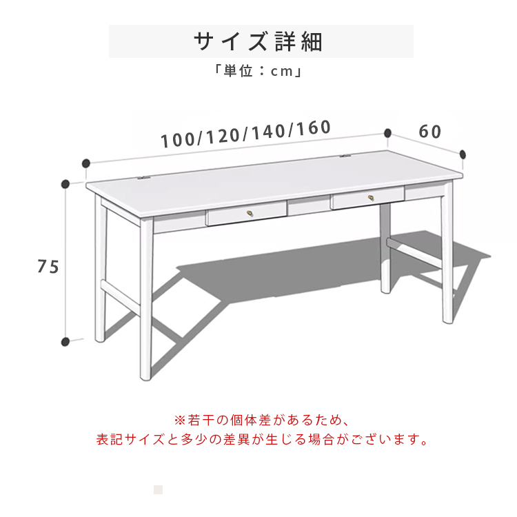 | サイズ | 幅100cm×奥行き60cm×高さ75cm 幅120cm×奥行き60cm×高さ75cm 幅140cm×奥行き60cm×高さ75cm 幅160cm×奥行き60cm×高さ75cm | ||