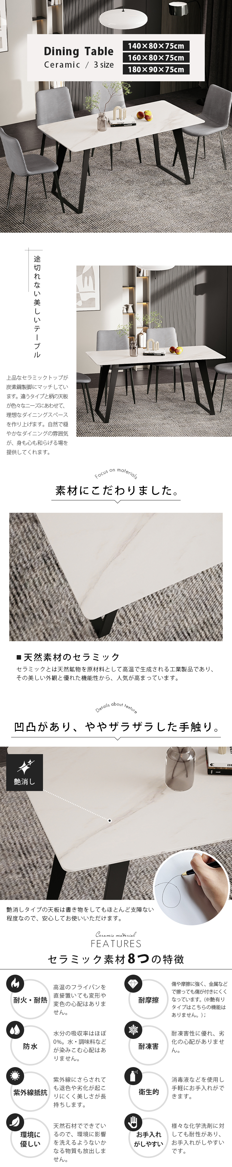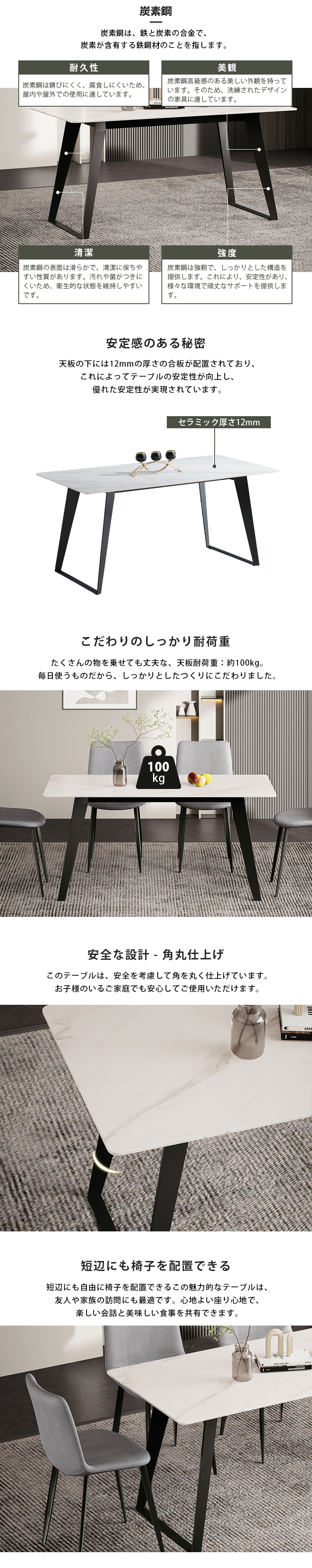| 材質 | 天板:セラミック 脚:炭素鋼 |