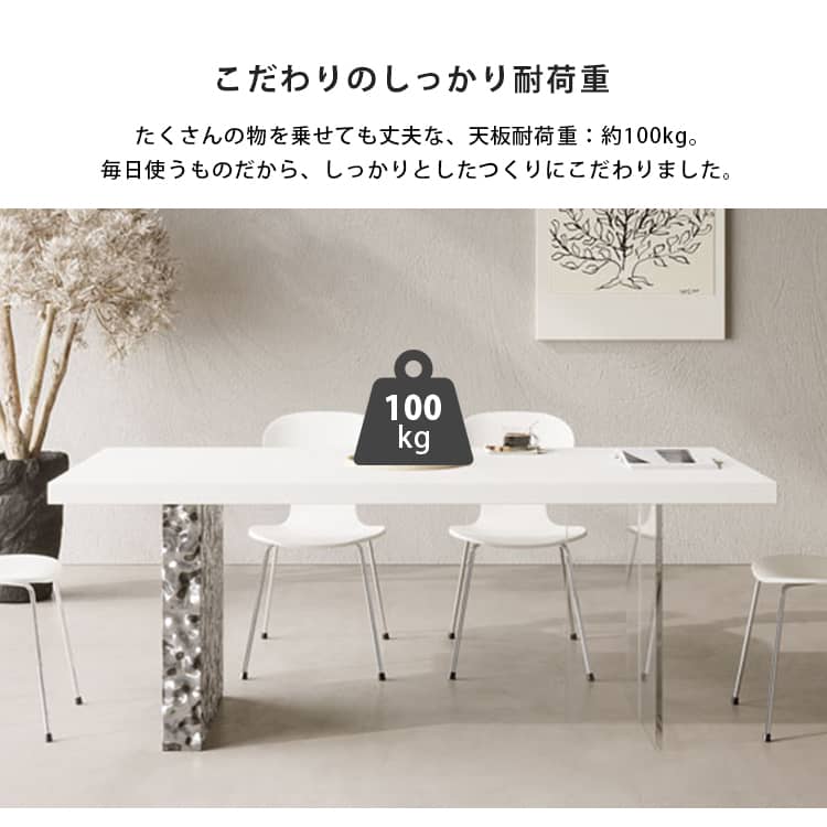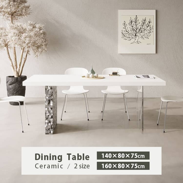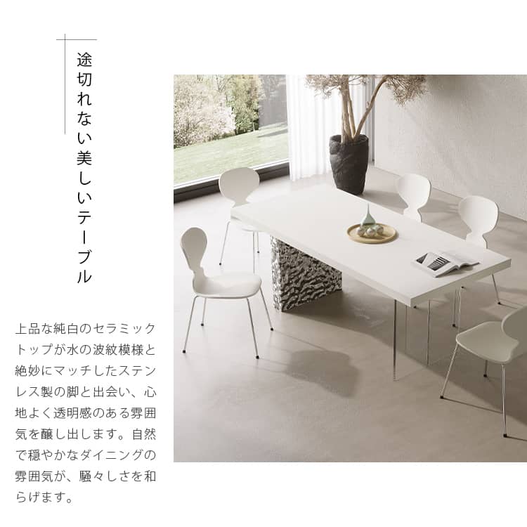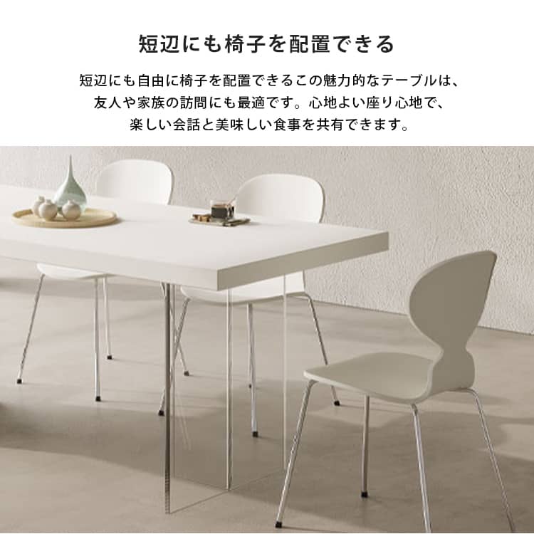 | おすすめのポイント | ■ホワイトのカラーは清潔感を与え、部屋を明るく演出します。 ■短辺にも椅子を自由に配置できる魅力的なテーブル。友人や家族の訪問でも心配はありません 。 ■下部にゆとりがあり、足元に広々とした空間があるため、快適なダイニング空間を実現し、リラックスした時間を過ごせます。 ■セラミック天板は高級感があり、耐久性も備えています。美しさと実用性を兼ね備えています。 ■長方形のテーブルは、多くの場所に適応する柔軟性があります。狭いスペースにも置くことができ、壁に沿って配置することも可能です。 |
