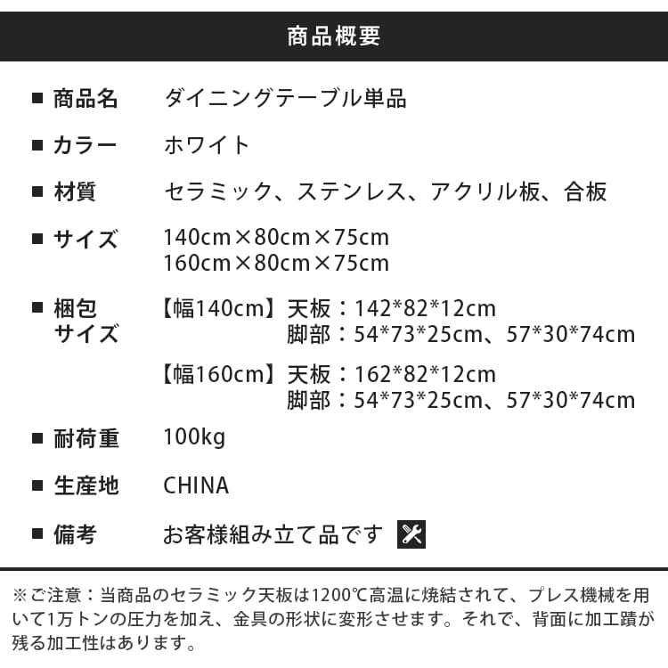 | 材質 | 天板:セラミック 脚:ステンレス製、アクリル |