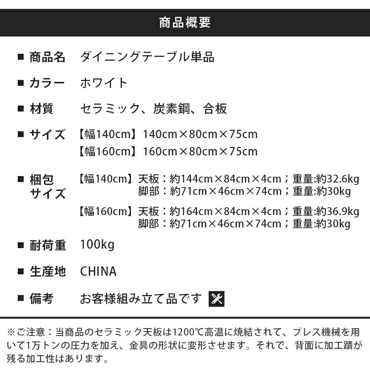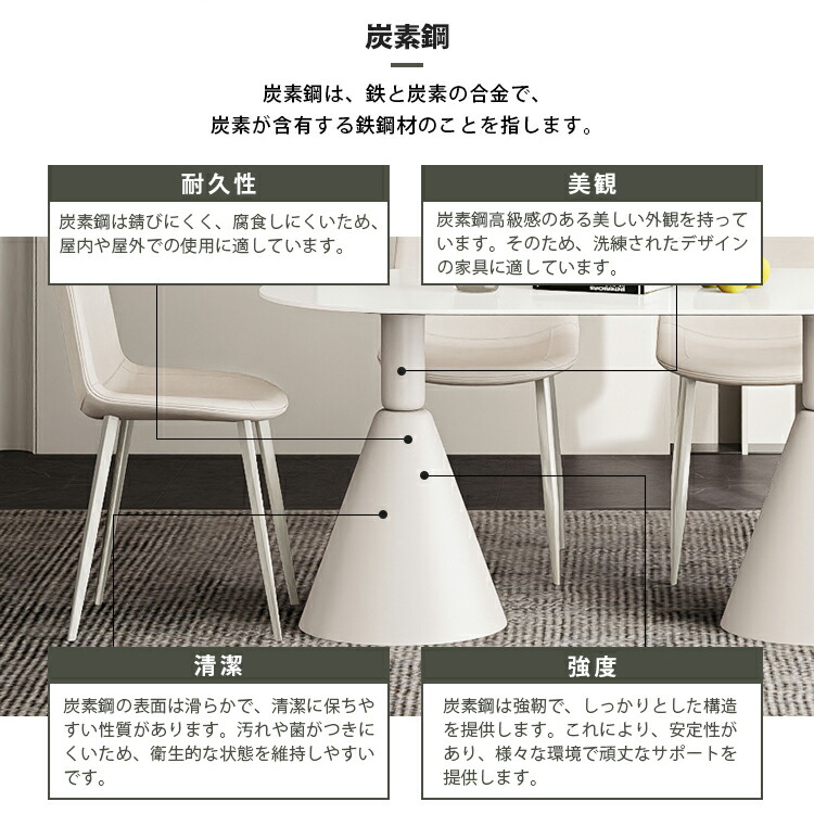 | 材質 | 天板:セラミック 脚:炭素鋼 |