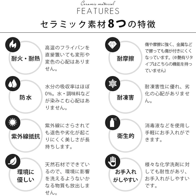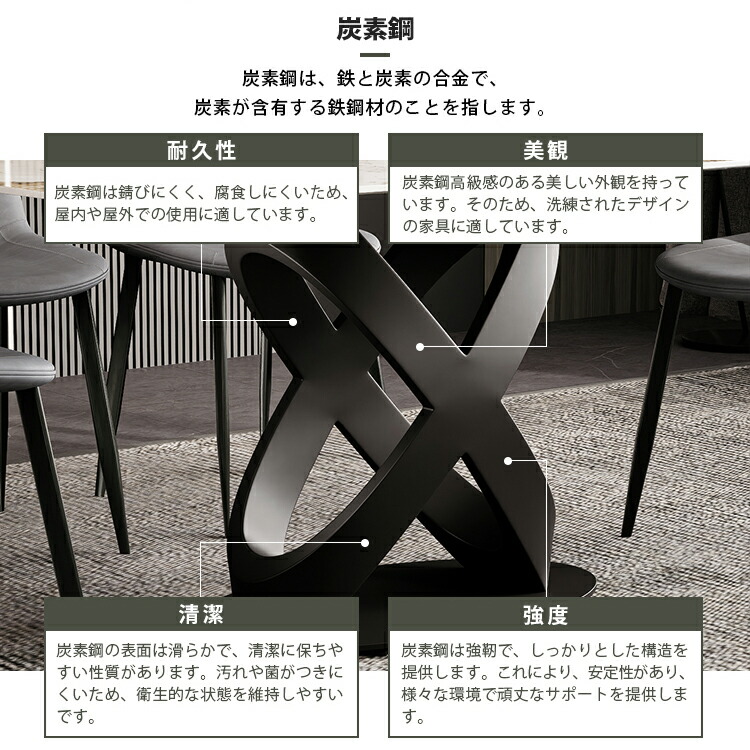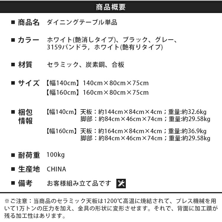 | 材質 | 天板:セラミック 脚:炭素鋼 |