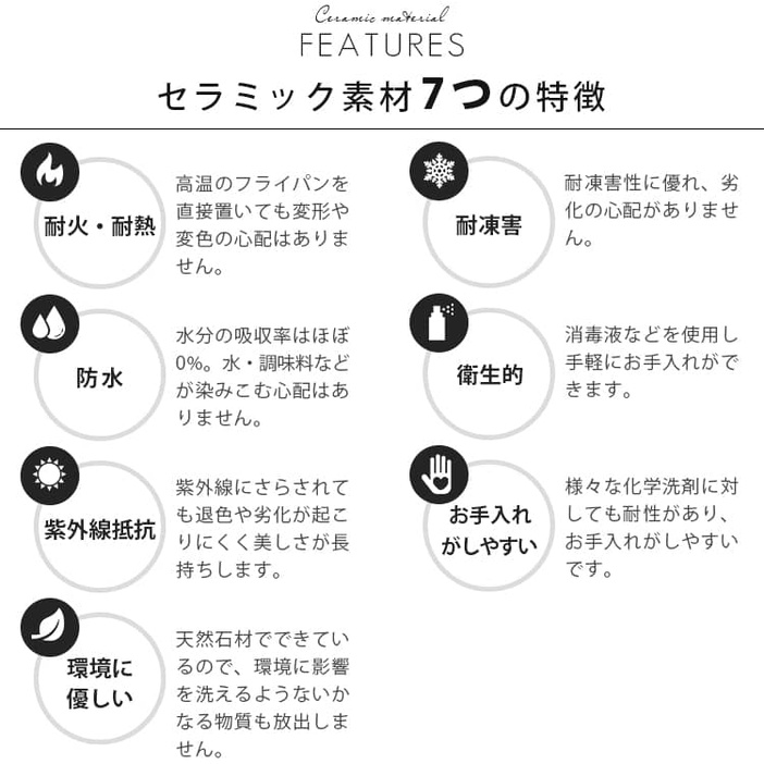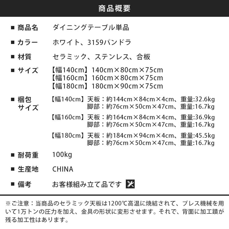 | 材質 | 天板:セラミック 脚:ステンレス |