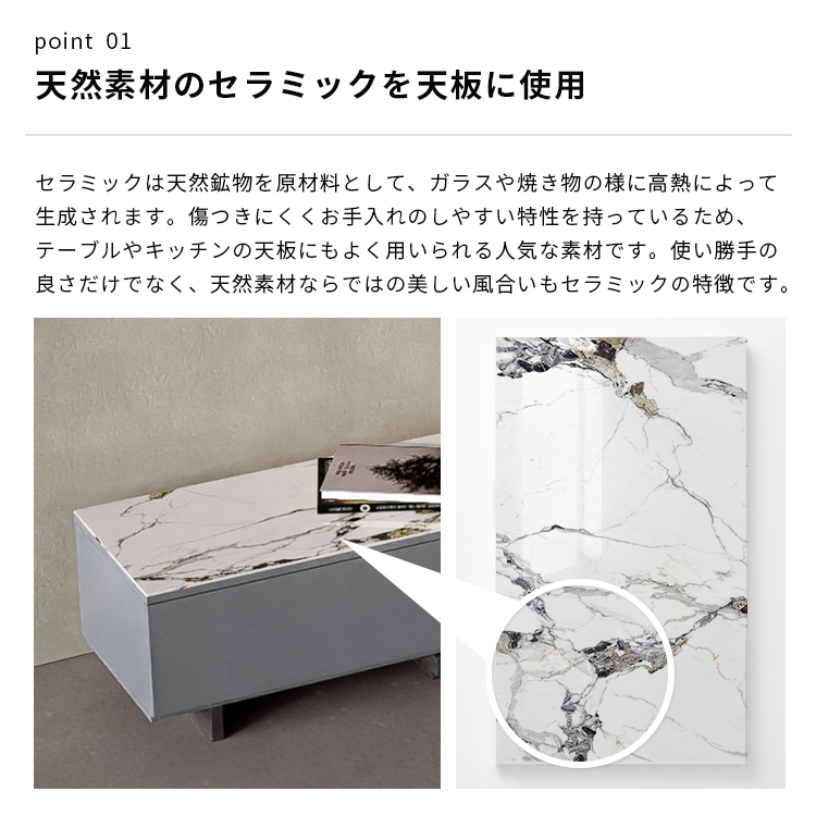 | 材質 | ■セラミック天板、スチール脚、MDF |