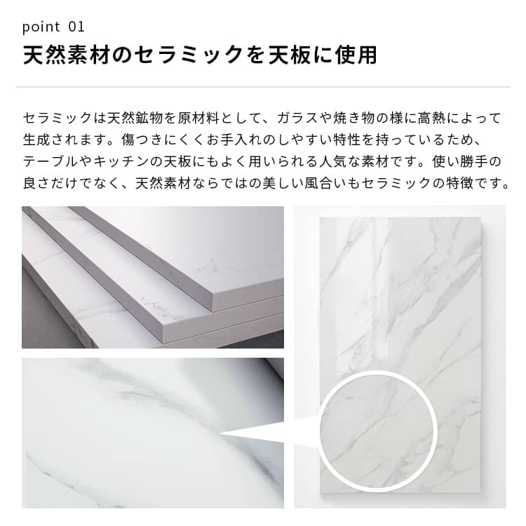 | 材質 | ■セラミック天板、スチール脚、ガラス、MDF |