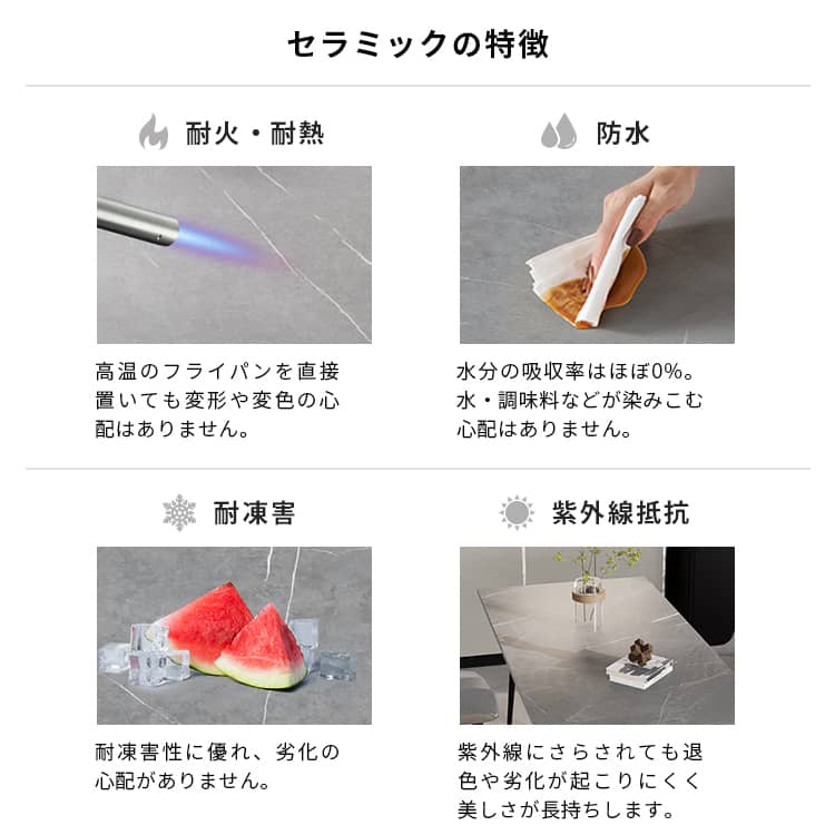 | 材質 | ■セラミック天板、スチール脚、MDF |