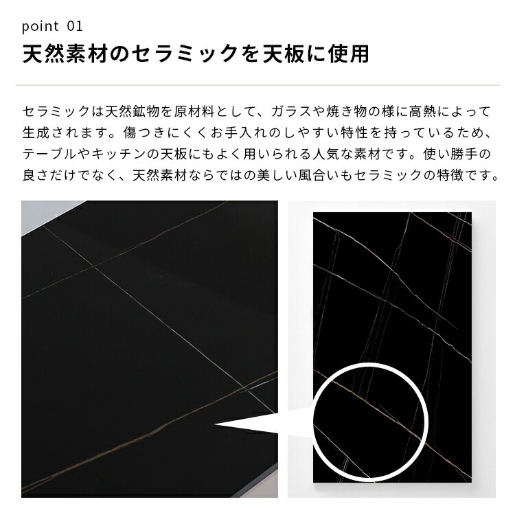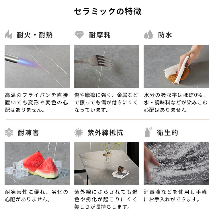 | 材質 | ■セラミック天板、炭素鋼脚、MDF |