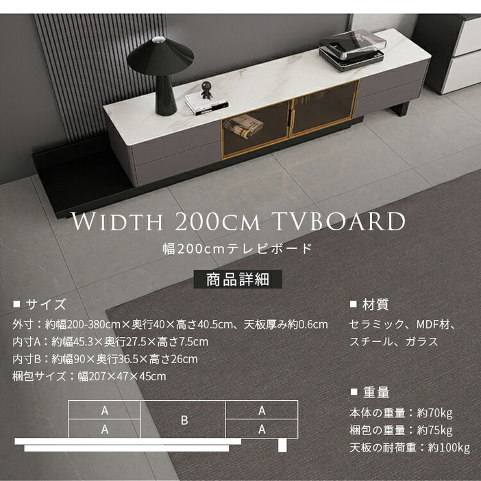 | サイズ | ■幅200~380×奥行40×高さ40.5cm |