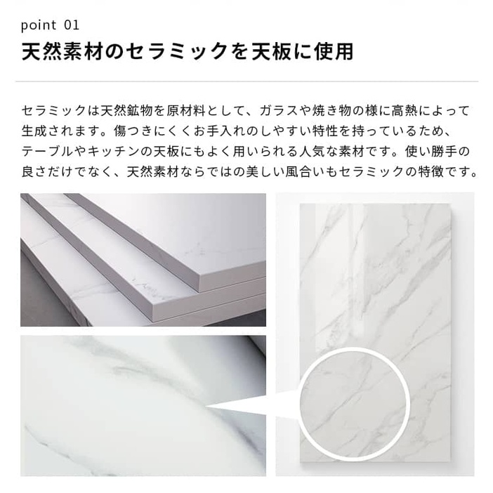 | 材質 | ■セラミック天板、炭素鋼脚、MDF、ガラス |
