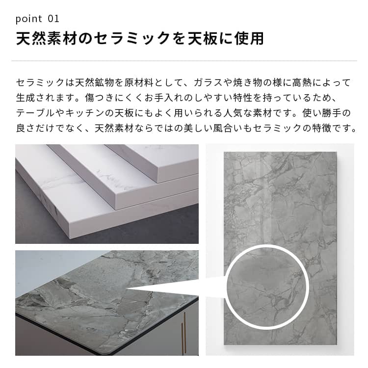 | 材質 | ■セラミック天板、スチール脚、MDF |
