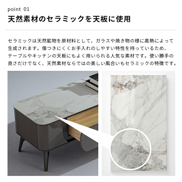 | 材質 | ■セラミック天板、スチール脚、MDF |