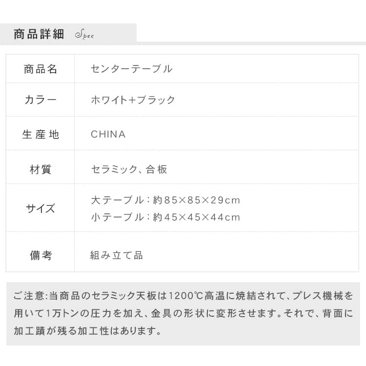 | 商品外寸 | ■大テーブル:約85×85×29cm ■小テーブル:約45×45×44cm |