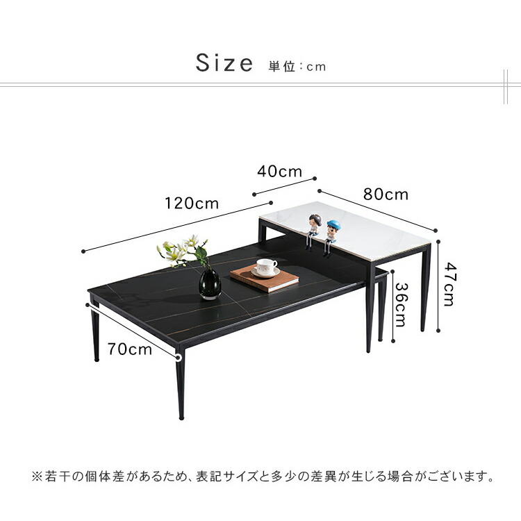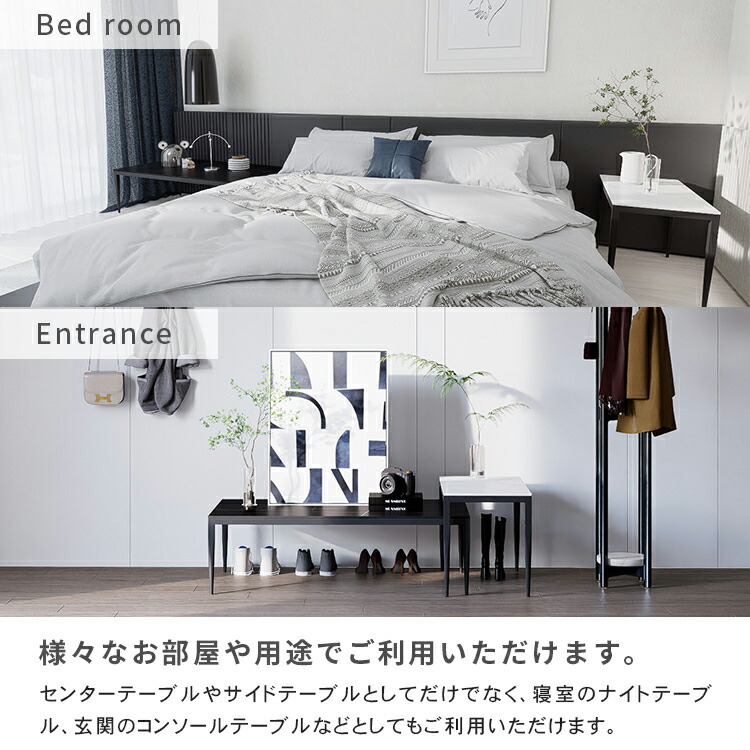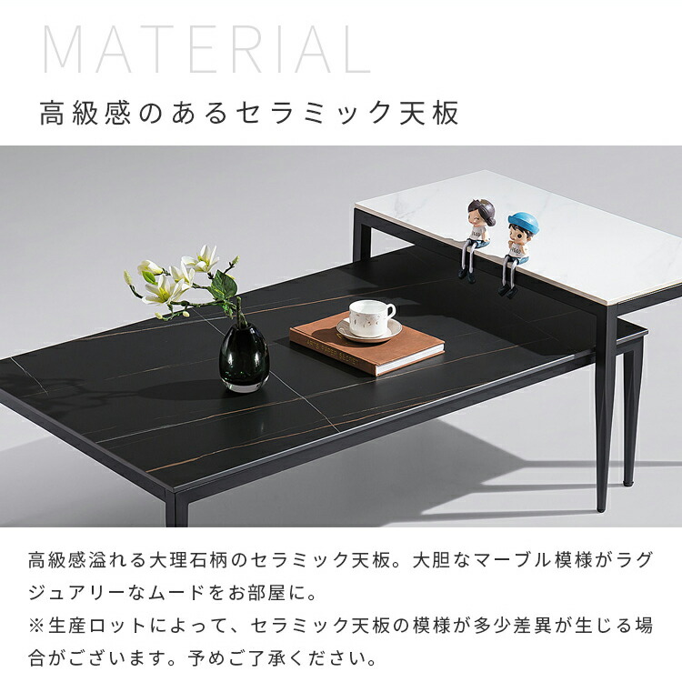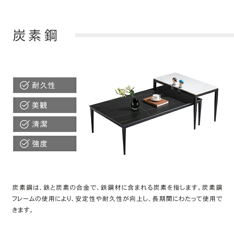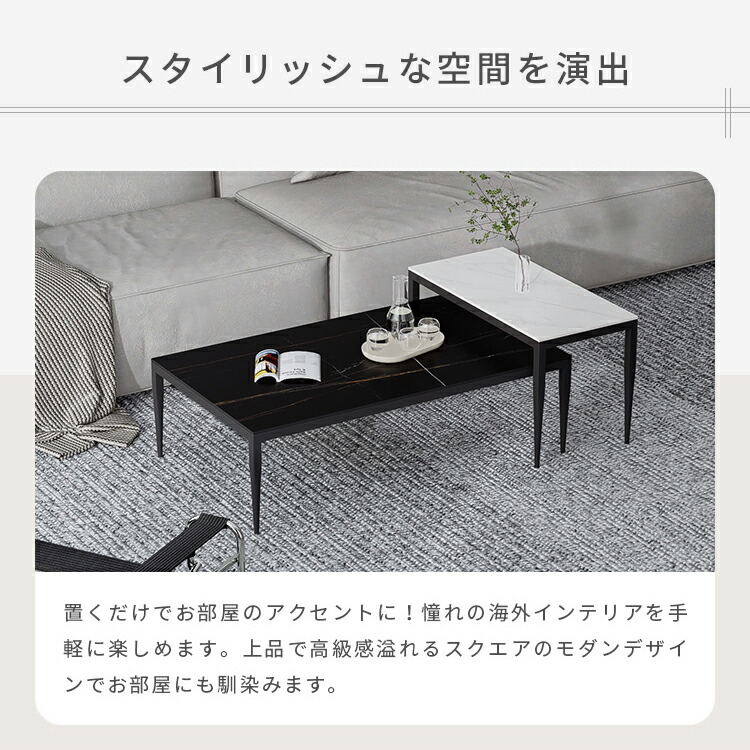 | おすすめのポイント | ■憧れの海外風インテリアのような、大理石柄の天板と細いスチール脚を組み合わせたネストテーブル。シンプルで洗練されたデザインが、インテリアのアクセントとなり理想のお部屋へと導いてくれます。 ■人気の大理石テーブルシリーズに、すっきりとした円形タイプが登場。四角形タイプ同様、モダンテイストをお部屋に演出しつつも、丸ならではの優しく親しみやすい雰囲気をプラスします。 ■四角形のテーブルに比べて、少しコンパクトに設計されているこの円形テーブル。さらに角がない分コンパクトなサイズになったことで、置く場所に視覚的なゆとりももたらします。 ■小テーブルを少し重ねて広めに使えば、あらゆる物をたっぷり置けるワイドサイズに。幅を調整できるので来客時など、様々なシーンで活躍します。 ■重ねて使うのはもちろん、同じお部屋や違うお部屋にバラバラに置いて使えるのも特徴です。 ■全体をスマートに引き締める、細めのブラック脚。圧迫感がなく、スタイリッシュな空間を演出します。 |