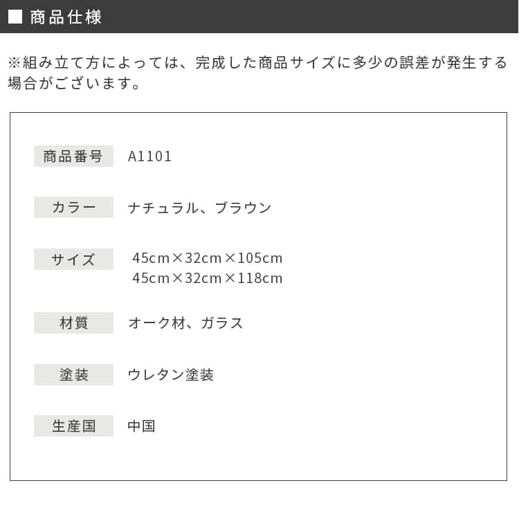 | 商品サイズ | ■約45×32×105cm ■約45×32×118cm |